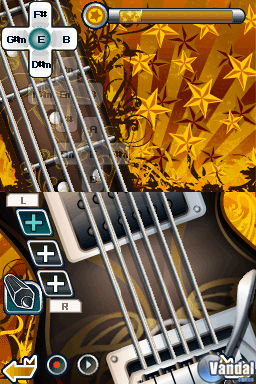 Tendremos la posibilidad de grabar por pistas nuestros temas, contando con la posibilidad de cambiar de notas y acordes con nuestras guitarras y bajo mediante las diferentes direcciones de la cruceta de control, según la leyenda que veremos en la pantalla superior de la consola. Cambiaremos el registro de acordes o notas que podamos utilizar mediante los botones laterales de la consola. Al cambiar el acorde, cada una de las guitarras del bajo o de la guitarra realizará una nota diferente, con lo que realizar un tema en condiciones puede llevarnos cierto tiempo, ya que puede llegar a ser bastante complejo. Contaremos también con una serie de loops predefinidos que podremos utilizar en nuestros temas, así como una serie de estilos musicales que podremos aplicar a cada uno de nuestros temas independientemente de lo que hayamos grabado ya, de manera que podremos cambiar la ambientación general de los mismos muy fácilmente.
