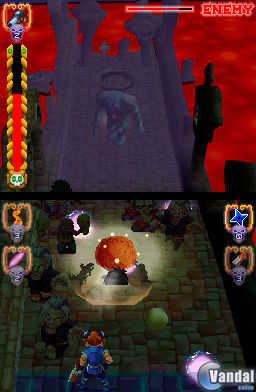 La acción, en general, es más o menos monótona, ya que únicamente deberemos de desplazarnos de izquierda a derecha con nuestro personaje por una plantilla predefinida de siete casillas, esquivando enemigos y proyectiles (éstos últimos podremos evitarlos también agachándonos, presionando con nuestro lápiz táctil sobre el personaje), mientras el desplazamiento vertical lo hace el juego de manera automática, disparando a mansalva a todo lo que se mueva por pantalla. Por el contrario, los enfrentamientos contra los jefes finales, sin duda, son un despliegue de originalidad y ponen la guinda al extraordinario mundo de fantasía y horror concebido por los diseñadores del juego. Seguramente, sólo por estos enfrentamientos finales, valga la pena hacerse con una copia del juego.