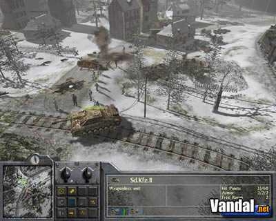 Lo mismo ocurrirá cuando un tanque enemigo, por ejemplo, dispare a uno de nuestros blindados, pudiendo dañar a cualquier tipo de unidad o elemento del escenario que se encuentre cerca de la explosión. Por eso tendremos que intentar por todos los medios que nuestras tropas no se amontonen. Una bomba bien lanzada puede afectar a un grupo numeroso de nuestras fuerzas, pudiendo llegar a destrozar a medio ejército nuestro con unos cuantos cañonazos. Y aunque sin duda este elemento aumenta todavía más el realismo en las batallas, no podemos estar del todo satisfechos al ver como en innumerables ocasiones nuestras unidades se quedarán bloqueadas en medio de algunos escenarios por intentar pasar todas a la vez por el mismo camino. Y llega a ser desquiciante ya que en los escenarios urbanos, o en las zonas boscosas, los enemigos pueden aparecer de repente y comenzar a exterminar a nuestras fuerzas sin casi ningún problema.