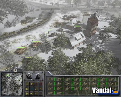 También nos encontraremos con una buena variedad de escenarios, pudiendo encontrarnos con las zonas urbanas ya citadas, pero también con zonas boscosas y llanuras heladas. Por supuesto, habrá misiones que se desarrollen a la luz del día, pero también tendremos que agudizar nuestra vista en los escenarios nocturnos. La cámara, como suele ser ya tradicional en los juegos de estrategia en tres dimensiones, la podremos controlar a nuestro antojo: rotándola o acercando el zoom a ras de suelo para observar con más detalles a austeras unidades.