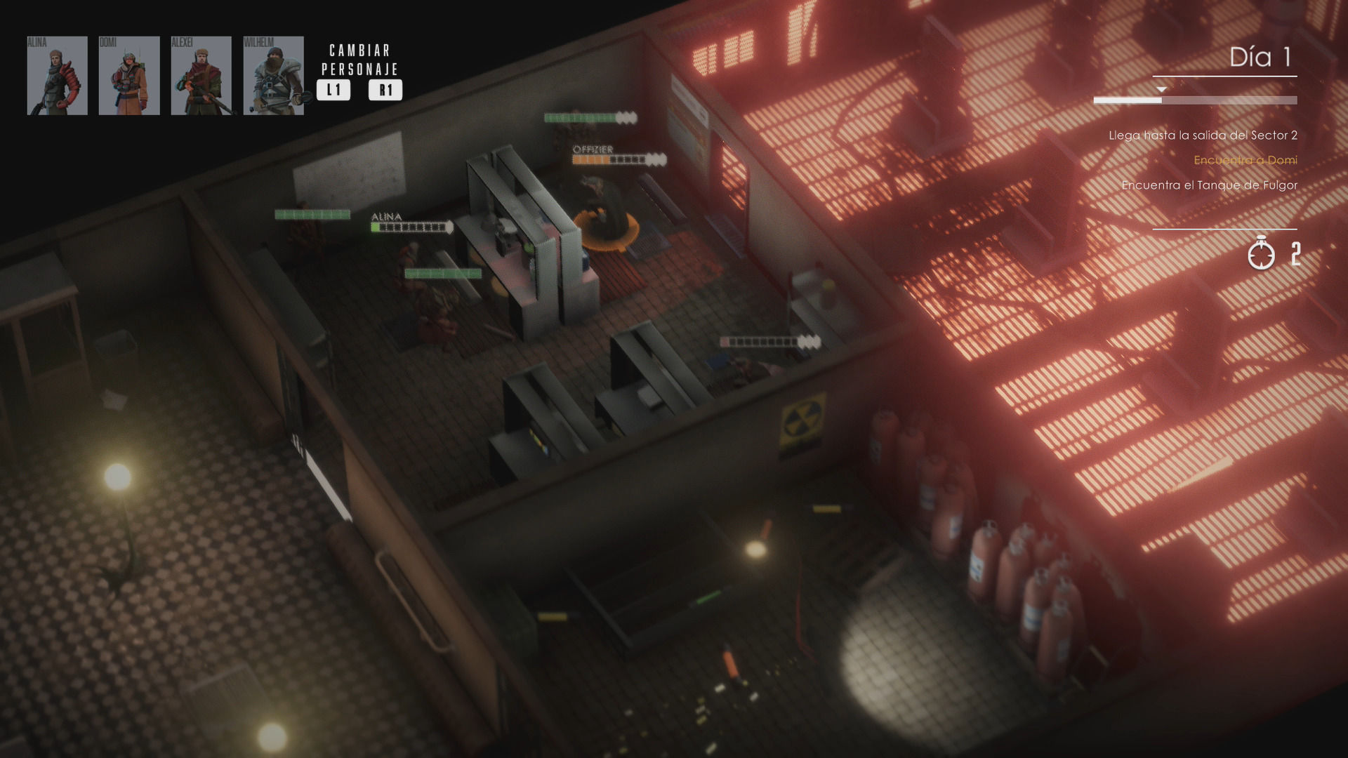 Entrando en materia, tenemos combates tácticos con la habitual zona cuadriculada que marca el desplazamiento máximo de nuestras unidades o el rango de sus ataques. En nuestro turno movemos los personajes hacia posiciones seguras, cerca de objetos del entorno, para proteger cuantos más flancos mejor; la interfaz ya nos muestra qué zonas están detrás de coberturas, por si no queda claro. El resto de acciones dependerán de cada unidad, porque las habilidades de estos personajes ponen la salsa a sus estrategias, equivalen a las clases. Tenemos los tiradores, con rifles para blancos lejanos o escopetas, pero también hay algunos hábiles con las armas blancas, muy letales en cortas distancias pero que, claro, necesitan colocarse en una casilla junto al enemigo. Los grupos no son excesivamente numerosos –varían según la misión- algo que está acorde a las zonas de cada enfrentamiento, de tamaño pequeño o mediano. Al final de cada combate, recuperamos la salud de todos los personajes.