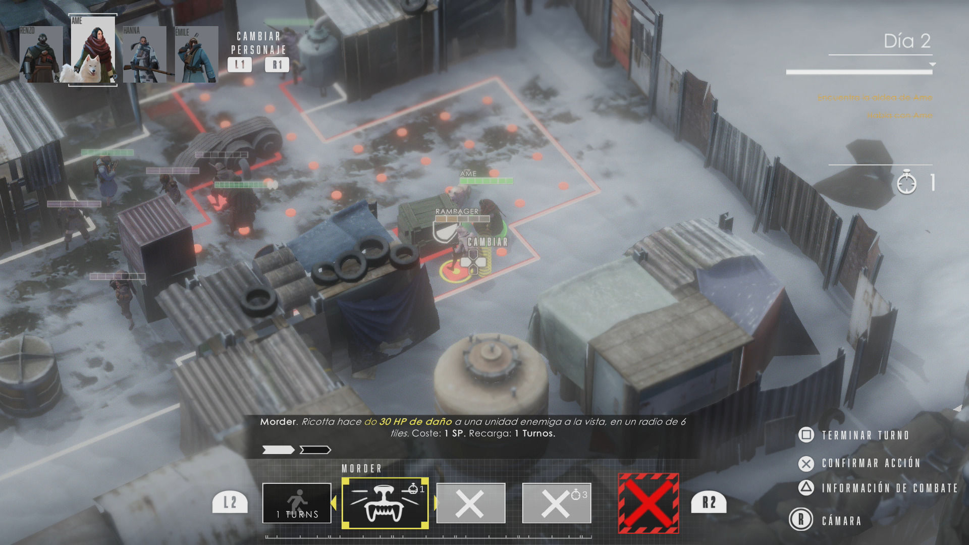A estos ataques básicos se suman otras técnicas muy interesantes, como potenciar la defensa, dejar KO a un personaje durante un turno o aquella que permite poner a nuestro soldado en alerta para que actúe en cuanto un enemigo cambie de posición a otra cobertura; esto también lo pueden hacer nuestros rivales, y conviene no pasar cerca de uno de ellos si han activado previamente la habilidad. Las diferentes facciones –cada una con sus unidades- son suficientemente inteligentes como para no colocarse en zonas desprotegidas, aunque nos habría gustado que en general se moviesen más, pues muchos quedan fijos en su posición inicial hasta el final de la batalla. Y cuidado, aparentemente la IA dirige muchos de sus ataques a tu unidad más débil -casualidad o no, es lo que hemos experimentado-, lo cual sube la dificultad en los mapas sin coberturas completamente seguras.