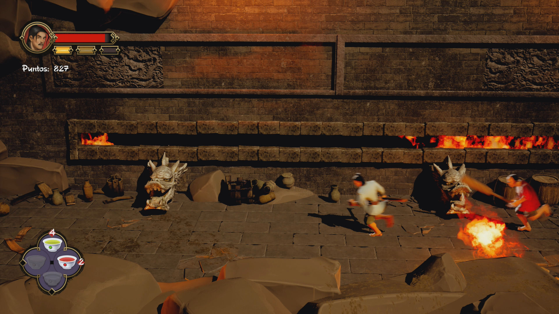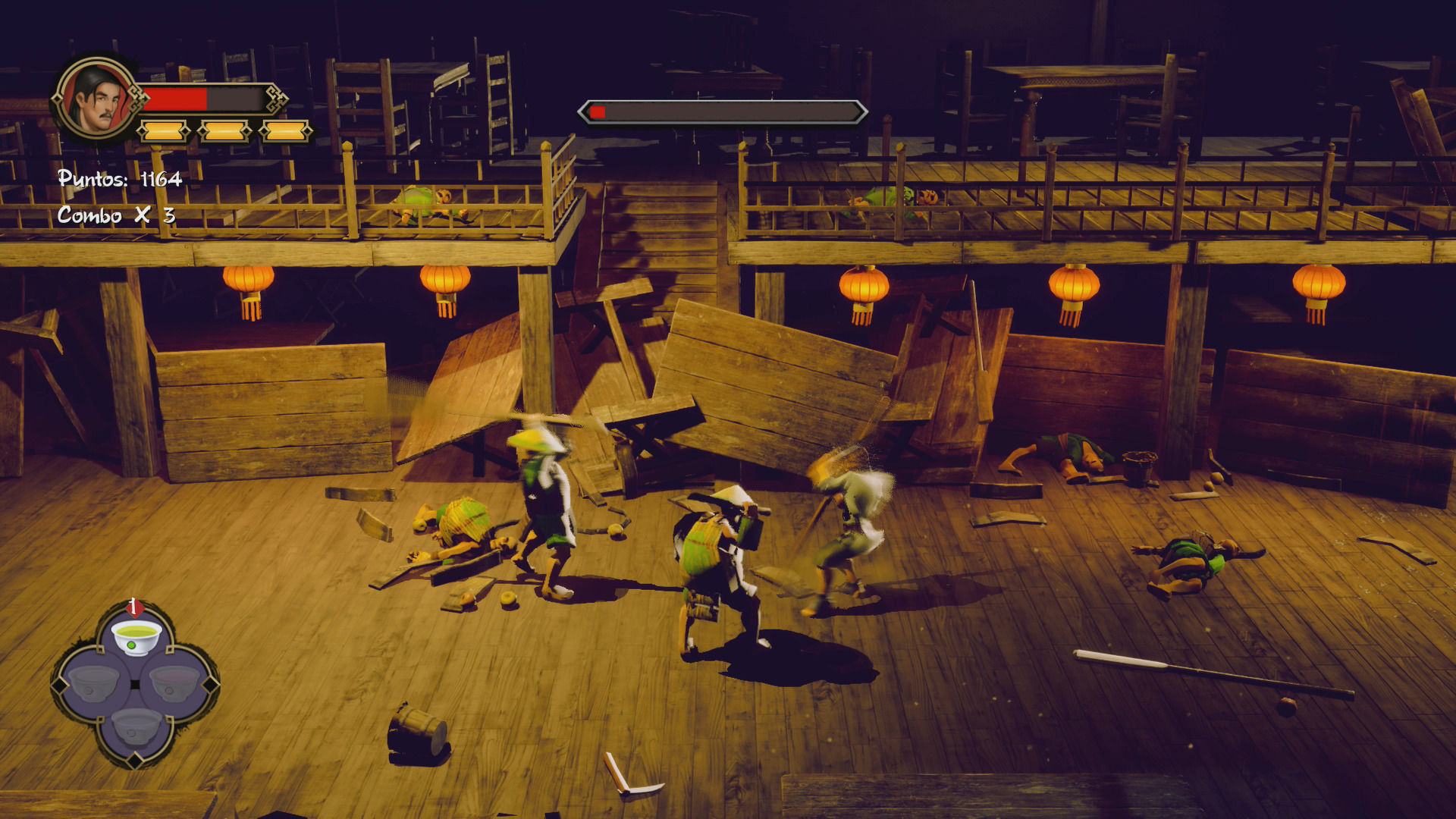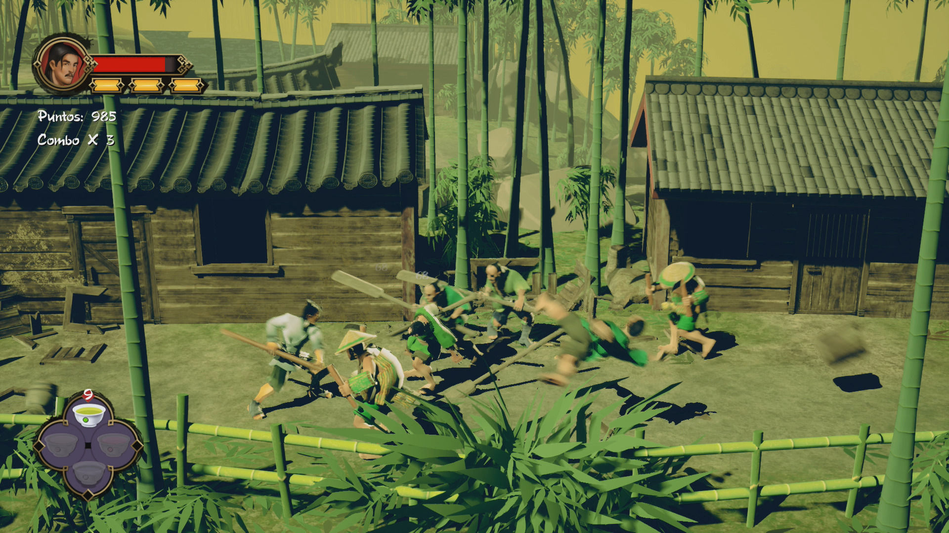 9 Monkeys of Shaolin va sobre seguro, y eso le permite tener un mínimo de calidad en todo lo que hace sin cometer ningún error grave. La jugabilidad no es la más precisa que hemos visto en el género y quizás sea el aspecto que más moleste a los puristas, pero entendido como un juego desenfadado cumple sobradamente con lo que se le puede exigir. Los combos son rápidos y vistosos, una vez desbloqueamos las técnicas es fácil empezar a unir piruetas con ataques más contundentes y ser creativos con todas las herramientas que se nos da. Nos ha gustado bastante por ejemplo un movimiento de protección que sirve para devolver proyectiles, así que en muchos momentos debemos prestar atención al destello de los enemigos colocados en lugares inaccesibles –segundo plano- para hacer rebotar sus dardos, bombas o flechas.