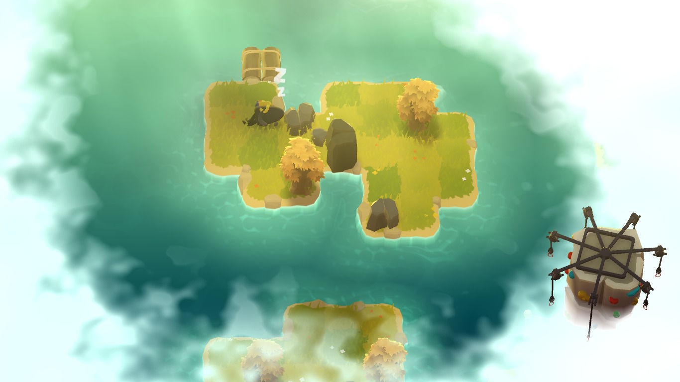 Si en A Good Snowman Is Hard To Build empujábamos montones de nieve para construir muñecos, en A Monster's Expedition hacemos lo mismo pero con troncos, aunque nuestro objetivo aquí es diferente: tenemos que construir puentes y balsas que nos ayuden a cruzar a la siguiente isla. Hay diferentes tipos de árboles que dan lugar a diferentes tipos de dinámicas y estas a diferentes tipos de rompecabezas, algunos más inspirados que otros, pero casi ninguno realmente sorprendente.