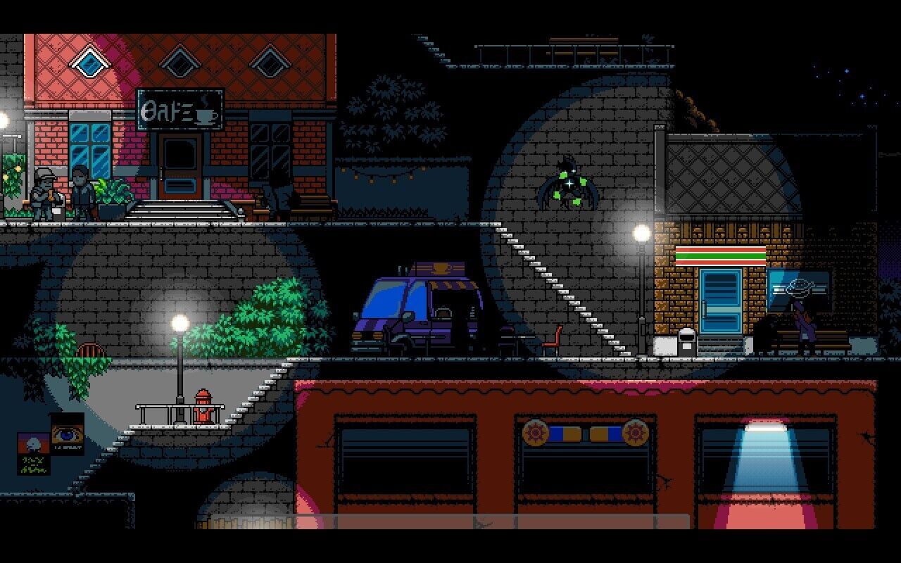 Porque la ciudad donde ocurre este cataclismo tiene un nivel de detalle importante. Es bella hasta decir basta, con unos entornos que podrían ser obras de arte del pixel art. También van soltando detalles interesantes sobre cómo la gente está reaccionando a la existencia de los huecos: el resurgir del fervor religioso, la anarquía en las calles, los esfuerzos por contener el caos por parte de las autoridades...