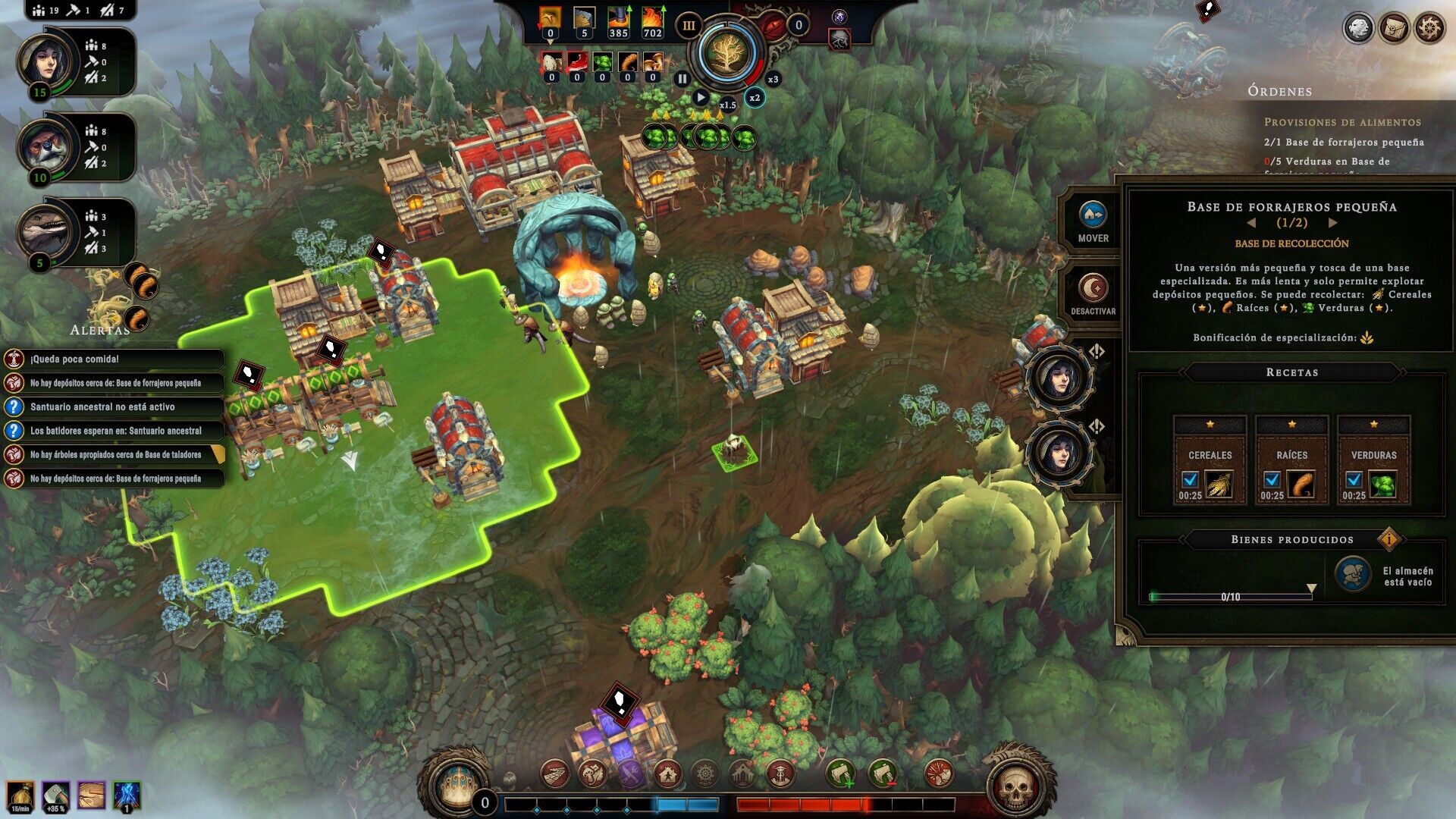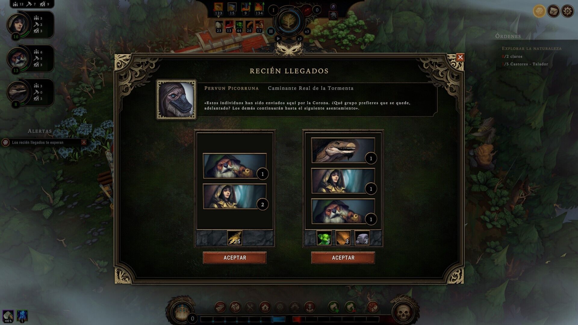 Este comienzo da pie al ciclo de juego que podemos esperar del género: situar las bases esenciales en mitad de un bosque salvaje e ir creciendo paso a paso, con más tareas que tengan ocupados a nuestras unidades, la recepción de nuevos miembros, la asignación de tareas y la expansión de los límites del campamento… Aunque eso signifique atraer peligros. Lógicamente los integrantes de la población estarán orientados a unas tareas u otras, y en este caso al utilizar una ambientación de fantasía esto da lugar a gestionar humanos, castores, lagartos y otros grupos, con habilidades, preferencias –alimentación, ocio, vivienda- y necesidades distintas.
