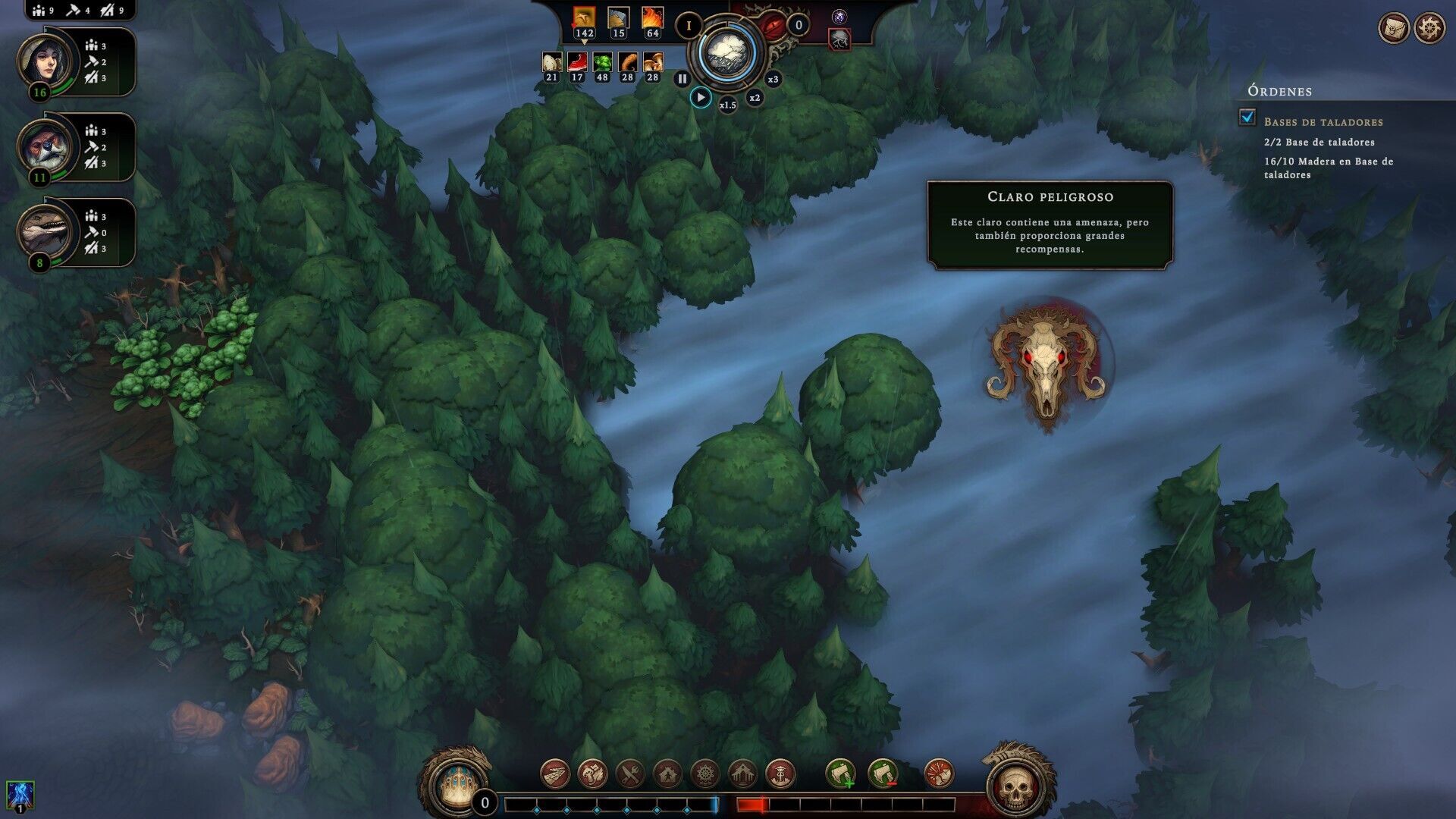Sin embargo, la principal presión la tenemos por el sistema indicado en la parte inferior de la pantalla: la barra azul representa la reputación y crece al completar tareas, progresar adecuadamente y así desbloquear nuevos planos de edificios que añadirán profundidad a la estrategia. Por otro lado, la barra roja crece en dirección contraria y es la impaciencia de la reina, lo que convierte esto en una carrera de fondo entre nuestras decisiones, acertadas o no, y el tiempo límite. Así que no se trata sólo de superar misiones, vigilar la comida –lograr que el asentamiento sea autosuficiente y produzca al menos lo que necesita- o atender riesgos externos que perjudicarán la vida o la determinación de los pobladores, sino también de contentar a la Corona.