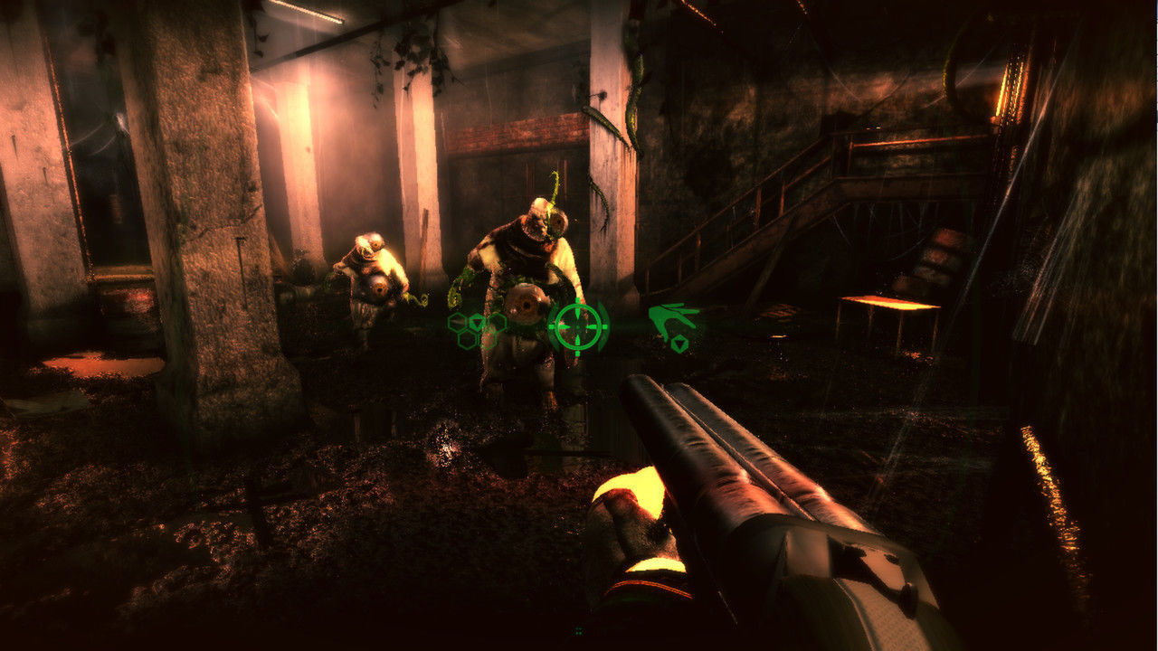 Albedo: Eyes from Outer Space es un juego muy atractivo técnicamente. Se desarrolla la mayor parte bajo tierra, y entre tuberías, instalaciones científicas y laboratorios de variada índole, pero no acusa repetición ni fatiga visual bajo ningún concepto -acabaremos rodeados de ciénagas tóxicas, de tentáculos y de lúgubres y orgánicas cuevas, con lo que sí pensáis en Aliens, de James Cameron, acertaréis-. Una vez más, nos vemos obligados a compararlo con Half Life o Bioshock, en los cuales se creaban ciertas cohesiones estéticas que transportaban al jugador a sus respectivos universos. Nos sentíamos parte de ellos. Pues bien, dicho sentimiento en Albedo: Eyes from Outer Space se repite, y teniendo en cuenta que el juego narra su disparatada historia in-game, sin escenas o secuencias de video, más todavía. Sus gráficos están plagados de detalles, como increíbles juegos de luces, buenos modelados o texturas de gran calidad y definición.
