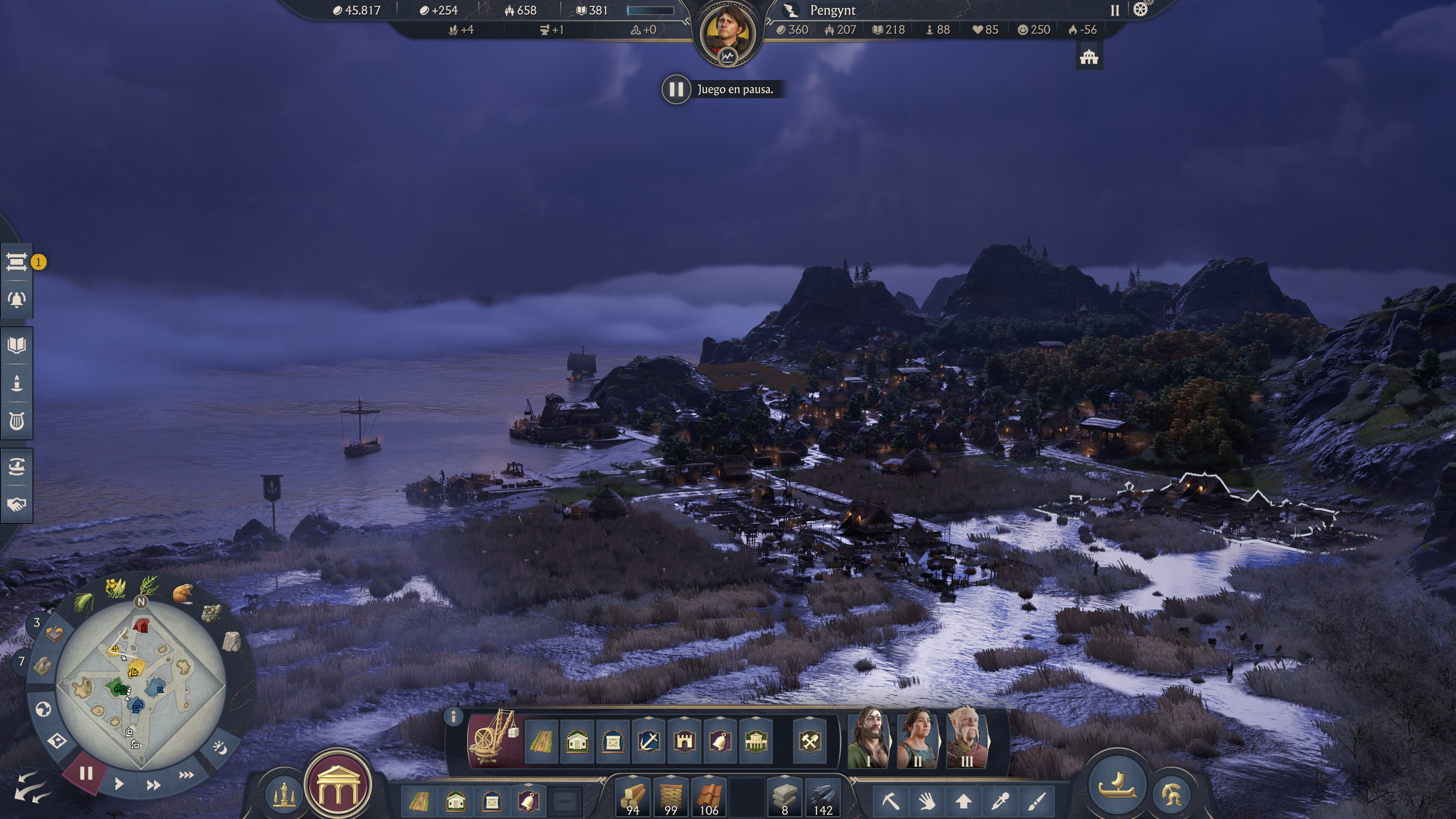 Sin embargo, es en Albion donde tenemos más cambios que aumentan la profundidad jugable. Lo primero y más obvio al llegar a las islas son las diferencias en el bioma, que se notan no solo en el aspecto o en la presencia de algunos recursos exclusivos de la provincia, sino que el juego busca dar un paso más allá con las marismas. Estas nos dan acceso a toda una serie de nuevos recursos a cambio de reducir el tamaño de superficie habitable de las islas, aunque si así lo queremos también podemos drenarlas y rechazar con la mano del hombre lo que ha colocado ahí la naturaleza.