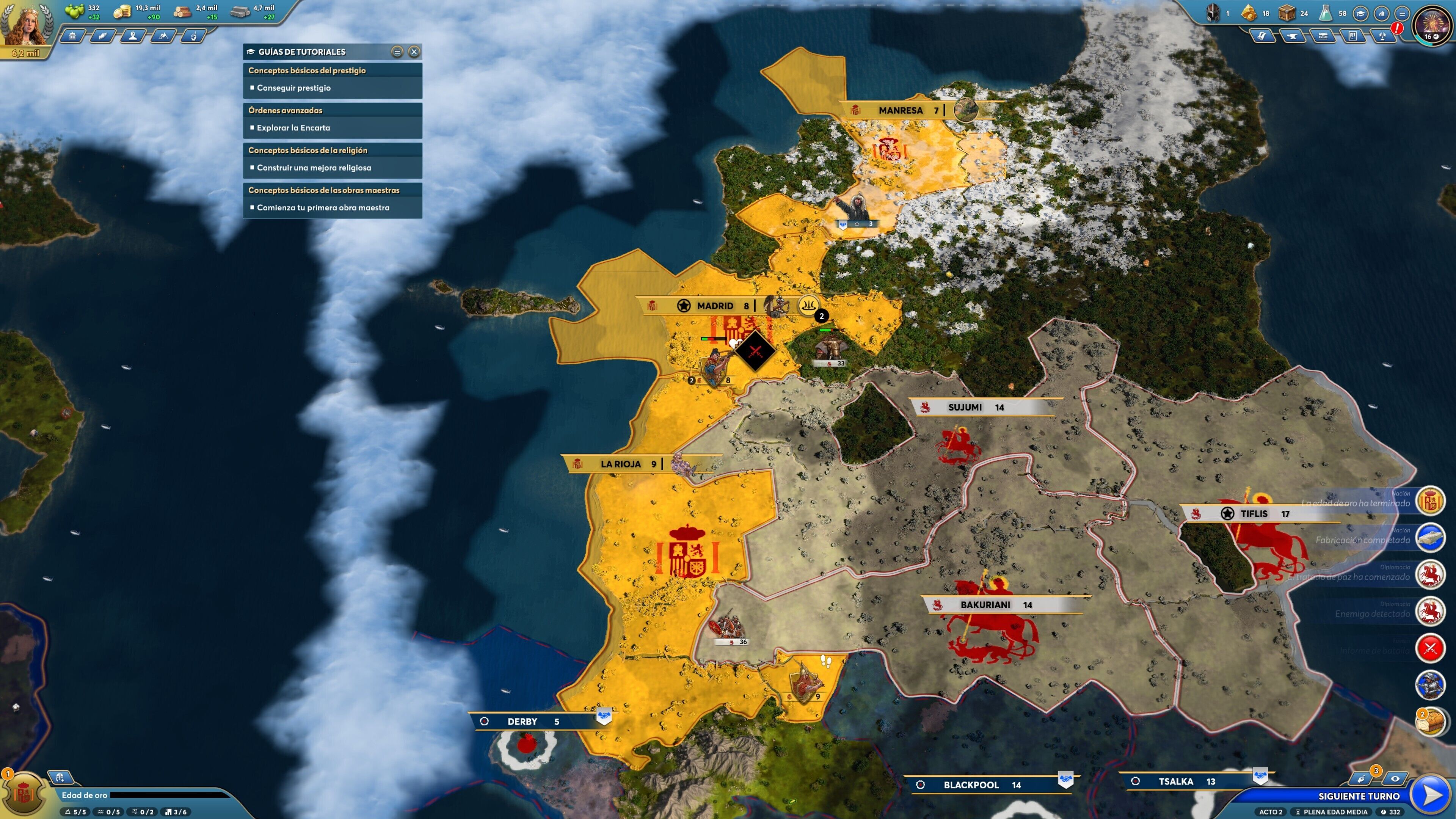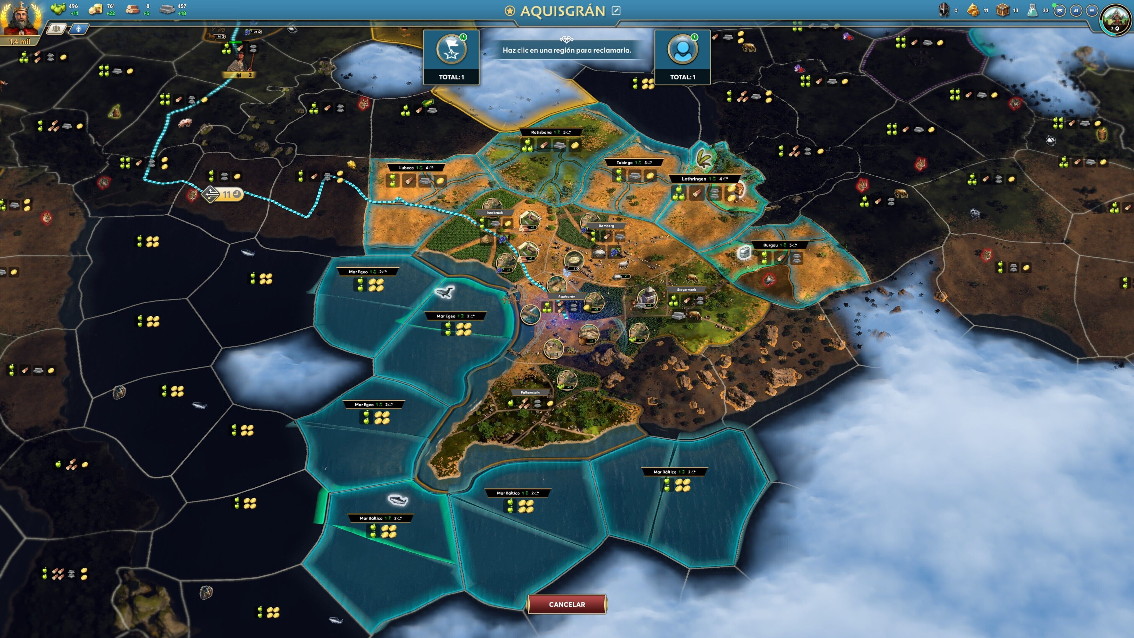 Otro de los puntos clave son las regiones. Podéis ir despidiendoos de los clásicos hexágonos, octógonos o casillas con formas regulares a las que estamos acostumbrados en muchos juegos de este estilo. En su lugar lo que hay en Ara: History Untold son regiones irregulares más similares a lo que podríamos encontrar en un mapa real.