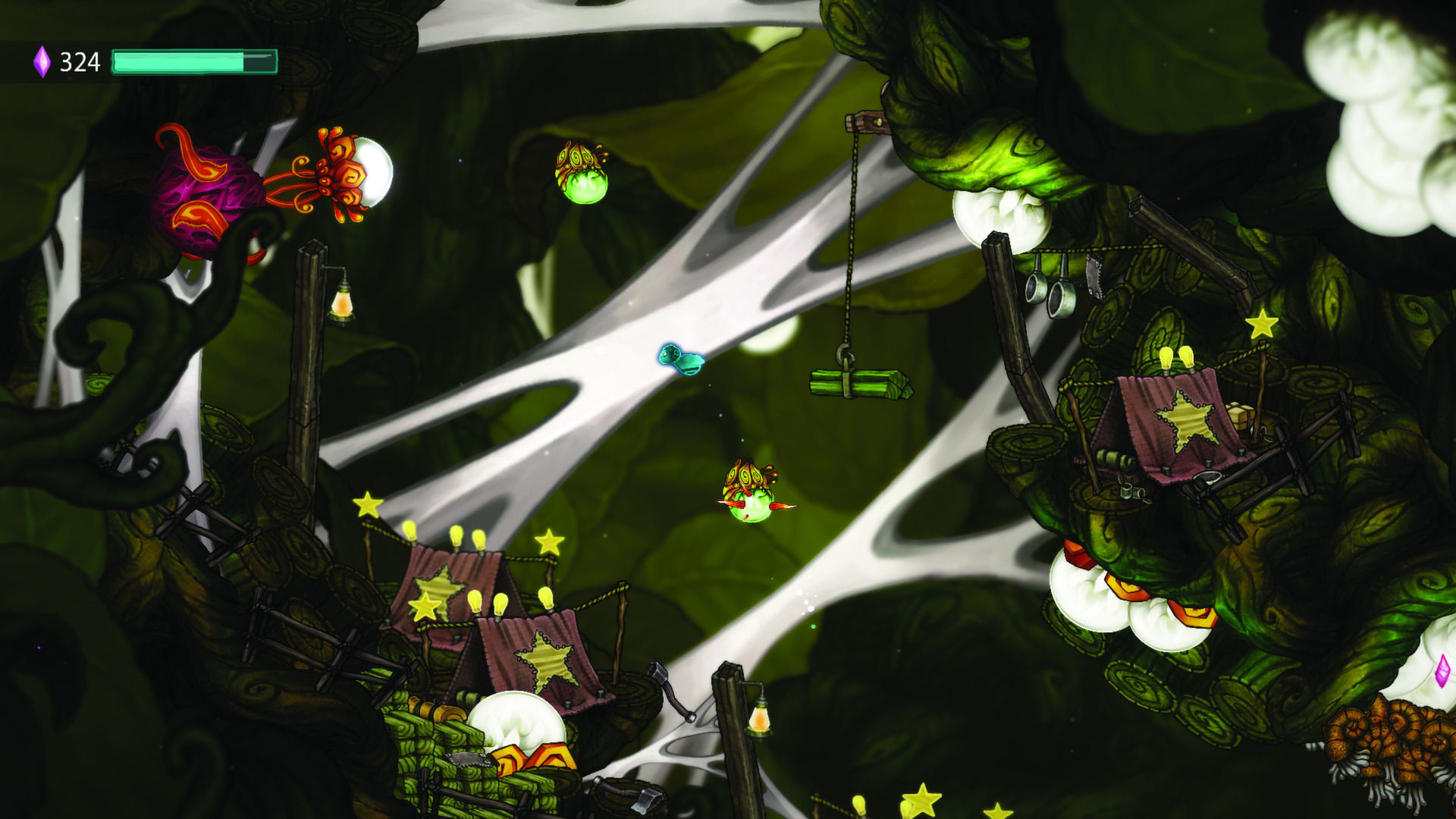 Un elemento clave en las plataformas son los puntos de vida y la recolección. Este punto se soluciona con una serie de cristales que darán puntos a Buddy y una serie de burbujas que esconden la preciada vida cuando somos atacados por los temidos caracoles pincho entre muchos otros. Unas veces estaremos solos contra los elementos, y otras lo haremos acompañados del Bubblebuggy, un aparato con metralleta que nos hará más llevadero el camino.