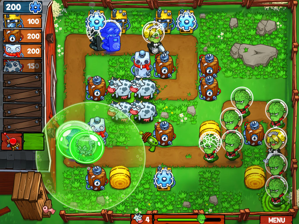 El juego es, en su planteamiento, bastante sencillo y fácil de comprender. Como últimos defensores de la granja, tendremos que poner todos los impedimentos posibles al avance de los extraterrestres, que vendrán en fila de a uno -y de forma ordenada- a por nuestros animales. Beware Planet Earth mezcla el concepto clásico de juego de defensa de torres, aquel en el que los enemigos siguen un camino prefijado de forma clara, y lo combina con el citado Plantas contra Zombis en la manera en la que recolectamos recursos y planificamos nuestras trampas. Los primeros niveles, como no podía ser de otra manera, sirven de toma de contacto ayudándonos a comprender la simple mecánica y a entender el devenir de una partida normal y corriente.