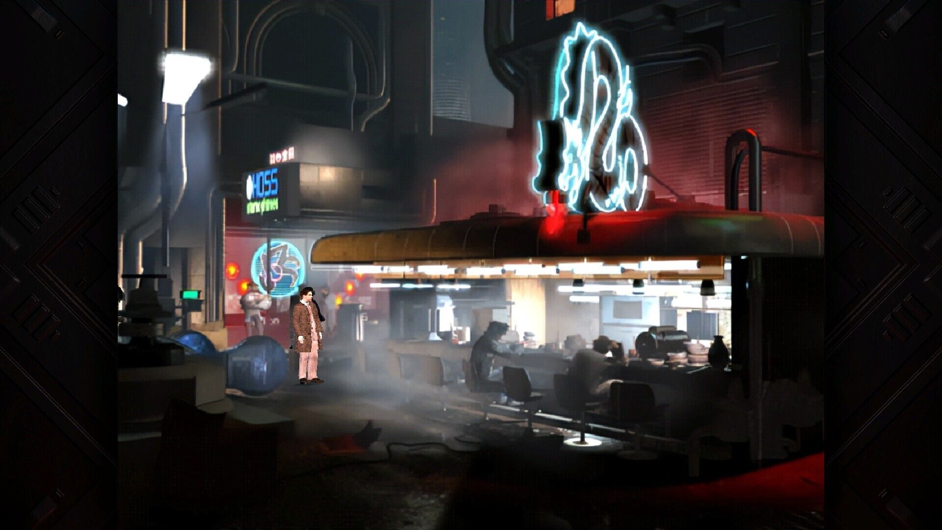 De la parte negativa o por lo menos la menos afortunada podemos hablar más. Los personajes se mantienen con la tecnología voxel y resultan muy cúbicos cuando se acercan a la pantalla, la mayoría de mejoras gráficas son mínimas; no sería del todo malo si no fuese porque hay aspectos en los que se da un paso atrás. Por ejemplo, algunas de las novedades en interfaz no pegan ni con cola –el menú inicial no puede ser más amateur- y el reescalado de los escenarios a veces se carga por completo el detalle de las paredes, el suelo o la lluvia –un pecado que resta a la ambientación-. Aquí el resultado es muy variable: hay localizaciones donde podría mejorar ligeramente, pero en otros son pantallas más borrosas y frías, que dan una sensación de renders más simples de lo que eran. Lo ideal habría sido un trabajo más personalizado en cada vídeo para limpiar artefactos sin borrar texturas, pero parece que no se hizo con mucho cuidado y parte de esa suciedad del mundo de Blade Runner se ha esfumado. Es un cambio a peor, por mucho que el original sufriese de una compresión excesiva.
