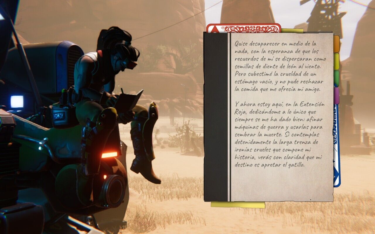 La narrativa es uno de los elementos más interesantes del juego. Esa dualidad entre acción y contemplación funciona sorprendentemente bien, recordando por momentos a lo que Enslaved: Odyssey to the West hizo con su mundo ruinoso y sus protagonistas mentalmente muy dañados. La caracterización de la protagonista tiene una aspereza muy humana, y aunque el guion no evita ciertos clichés del western futurista, consigue transmitir una historia de redención sin caer en el dramatismo barato.