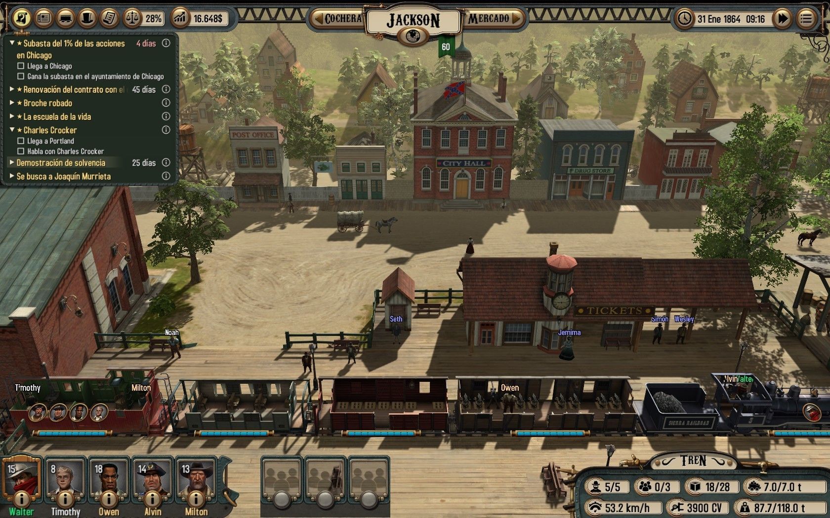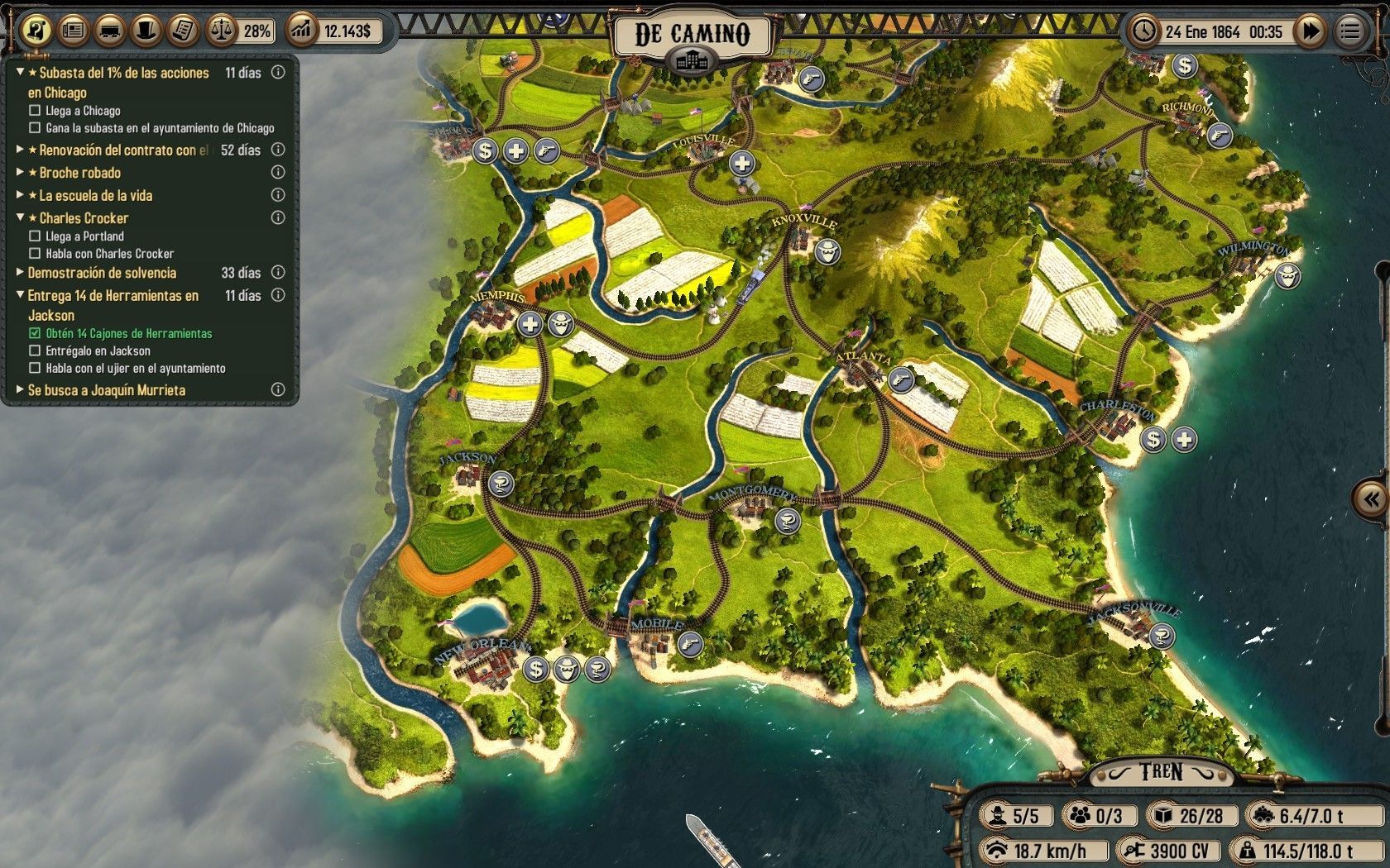 Entre las misiones que van surgiendo de vez en cuando de la campaña y las que vas aceptando en cada ciudad es bastante habitual tener tres o cuatro encargos a la vez, la mayoría de las veces con límite de tiempo y penalización de dinero por incumplimiento. Todos estos factores contribuyen a implicarte en el juego de forma que cuesta encontrar el momento en que la intensidad de la partida decaiga y puedas terminar la sesión de juego. Trenes y estrategia es una buena y atractiva combinación, que en este caso tiene un elemento de rol que se funde con la estrategia con un excelente resultado.