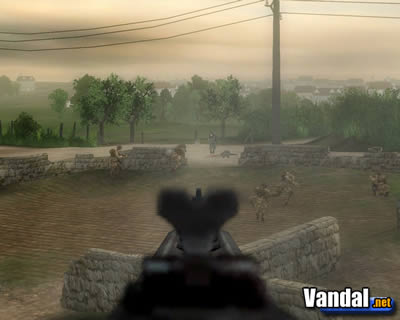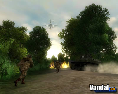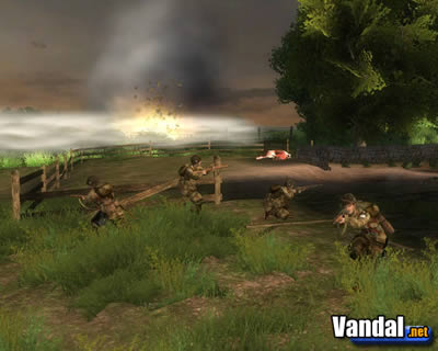 Otro punto fuerte del juego es la ambientación, gritos, explosiones, aviones volando bajo… La sensación de estar sumergido en un conflicto está muy conseguida, claro ejemplo es la secuencia inicial del juego en la que saltas de un avión en llamas, impresionante en todos los sentidos. Los efectos de las explosiones son de lo mejor que hemos visto, el sonido de los proyectiles cayendo con el correspondiente estruendo de la explosión y la tierra levantada, igualmente bien conseguido el efecto de explosión de las granadas.