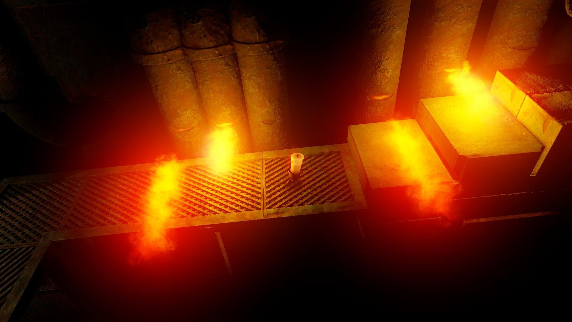 El otro tipo de puzle es más clásico y consiste en pulsaciones de paneles en un orden concreto para abrir puertas. Lógicamente estos paneles están dispersos por el escenario, y eso nos hará investigar cada rincón de la zona, evitando caer al vacío, al agua y por supuesto los peligros del calor, sean llamaradas de fuego o metal incandescente, todos de muerte instantánea. Dado que el tema de la oscuridad pierde parte de su sorpresa tras un tiempo, en la parte final se introduce otro tipo de mecánicas un poco diferentes.