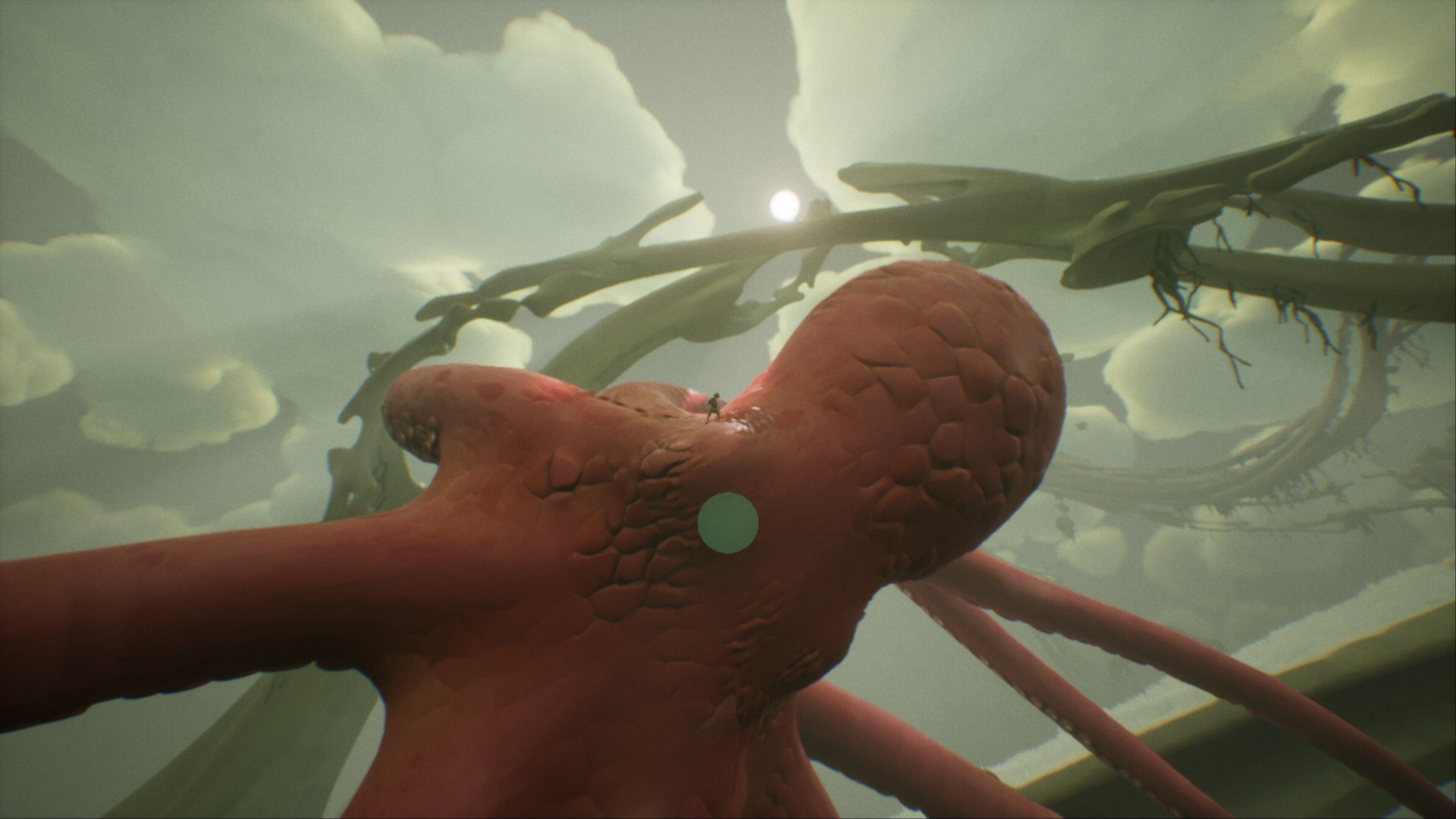 Y luego, por último, los monstruos gigantes que escalas. Parecen que son el centro de los niveles, pero tienen un protagonismo menor del que parece. Lamentablemente, además, son secciones que se convierten en las más frustrantes del juego. Es muy difícil entender qué partes de la superficie de la criatura son estables para recuperar tu resistencia. Y una vez lo consigues, estos monstruos se mueven demasiado. A veces, hay secciones largas sobre estos monstruos, y si te caes durante uno de estos "viajes", es posible que tengas que repetir una sección de varios minutos para llegar a la sección que tienes que superar. Si a esto le sumas que hay muchas posibilidades de fracasar por cuestiones que se escapan a tu control, el resultado te genera más rechazo que este placer estético que, en teoría, ofrece Chasing the Unseen.