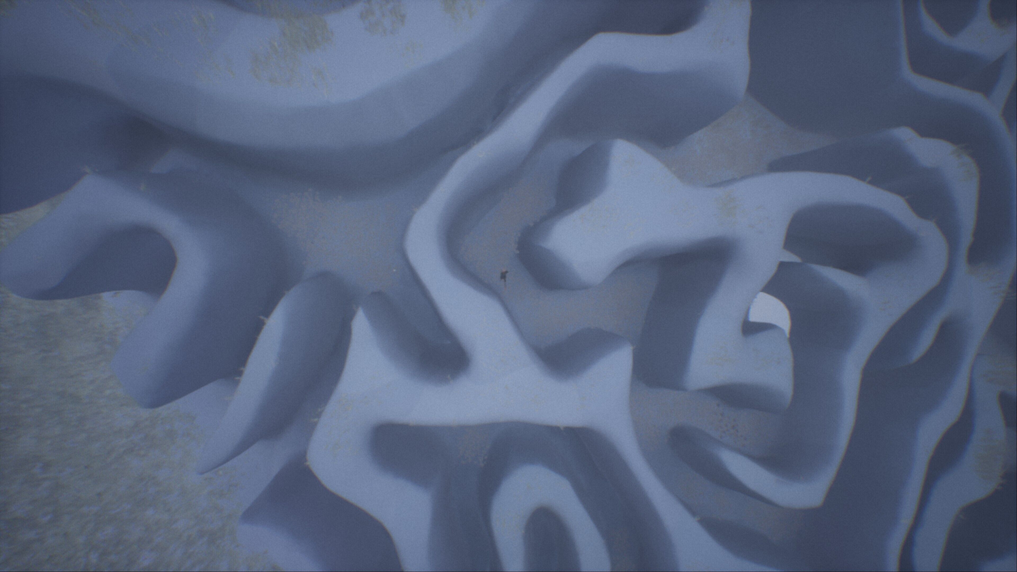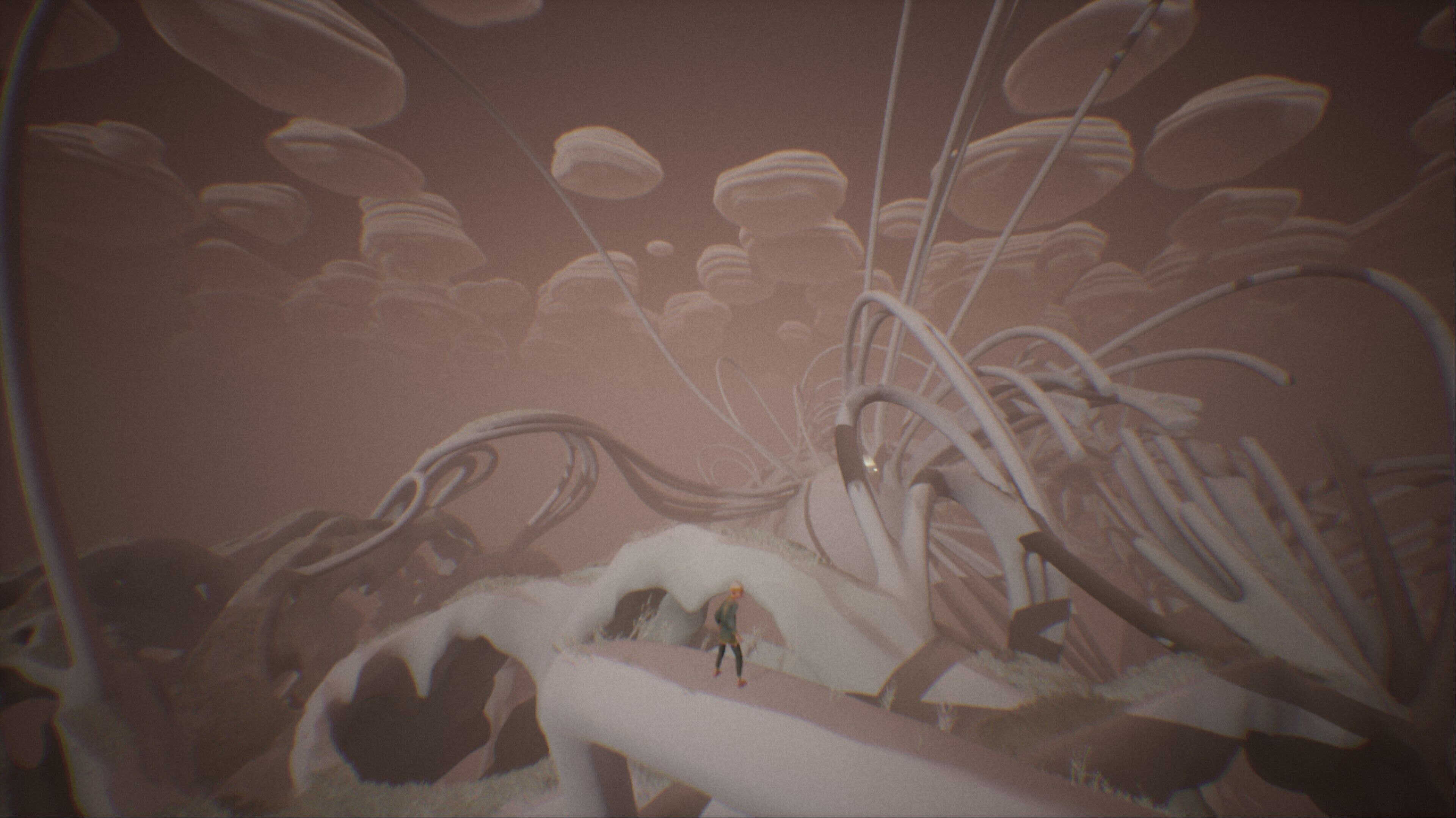 Chasing the Unseen tiene todos los ingredientes para ser una joyita de festival, y ya llamó la atención de la prensa antes de su lanzamiento. Su creador asentado en Quebec, Mattheiu Fiorilli, viene de la industria de los efectos visuales y, cansado de ser un engranaje más dentro de los grandes estudios, decide ponerse a experimentar con figuras fractales en Houdini (un programa de referencia para la industria VFX). Los fractales son estructuras que se repiten a sí mismas en diferentes escalas. Esto significa que cuando observas un fractal de cerca, ves patrones similares a los que ves cuando lo observas desde lejos. A nivel estético son fascinantes, ya que parece una figura que se repite infinitamente a sí misma, resultando en visuales muy complejas y detalladas. Las imágenes promocionales que acompañan a este título sirven como testimonio de las habilidades estéticas del desarrollador, partiendo de esta técnica para generar un resultado que, ciertamente, llama la atención. El resto del concepto, por la presencia de enormes criaturas a las que nuestro protagonista se encarama para progresar en la aventura, recuerda a Journey y, sobre todo, a Shadow of the Colossus.