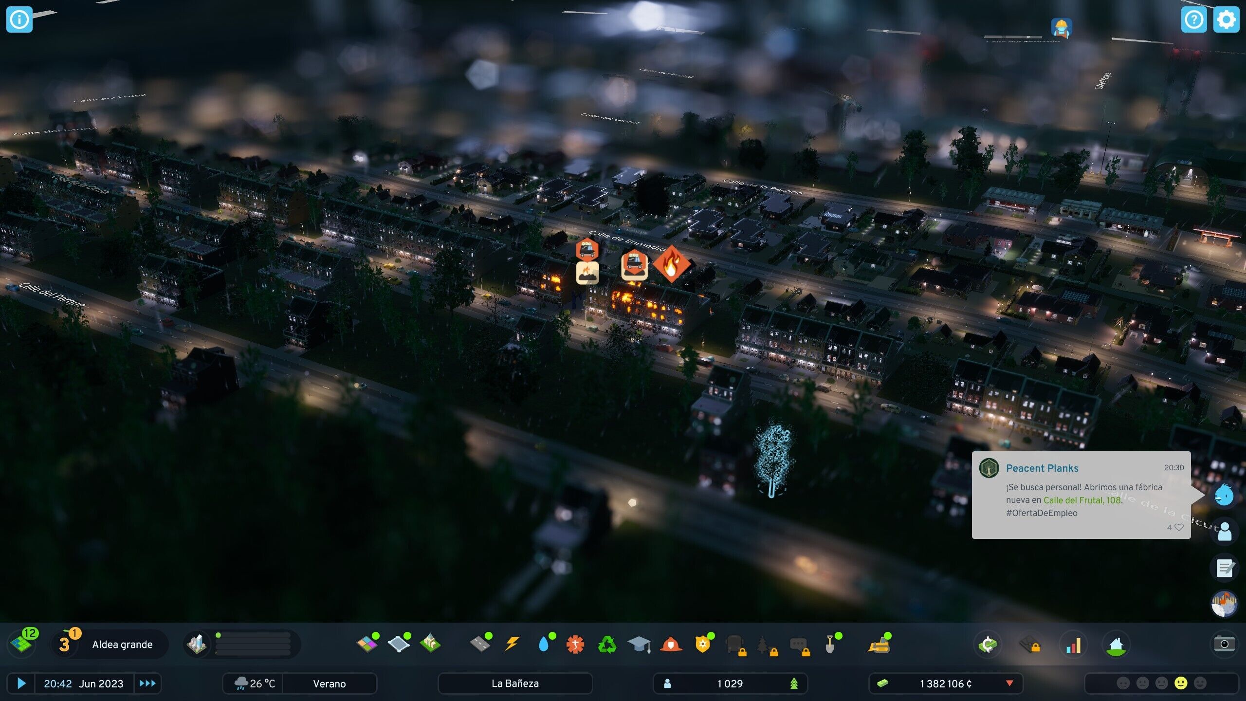 De entrada, cada vez que nuestra población sube de categoría recibimos un buen montante del estado y podemos desbloquear nuevos edificios mediante un árbol de progreso, así como se van activando nuevas funciones y posibilidades para nuestra ciudad: edificios de oficinas, la posibilidad de crear zonas industriales especializadas, otros tipos de barrio...