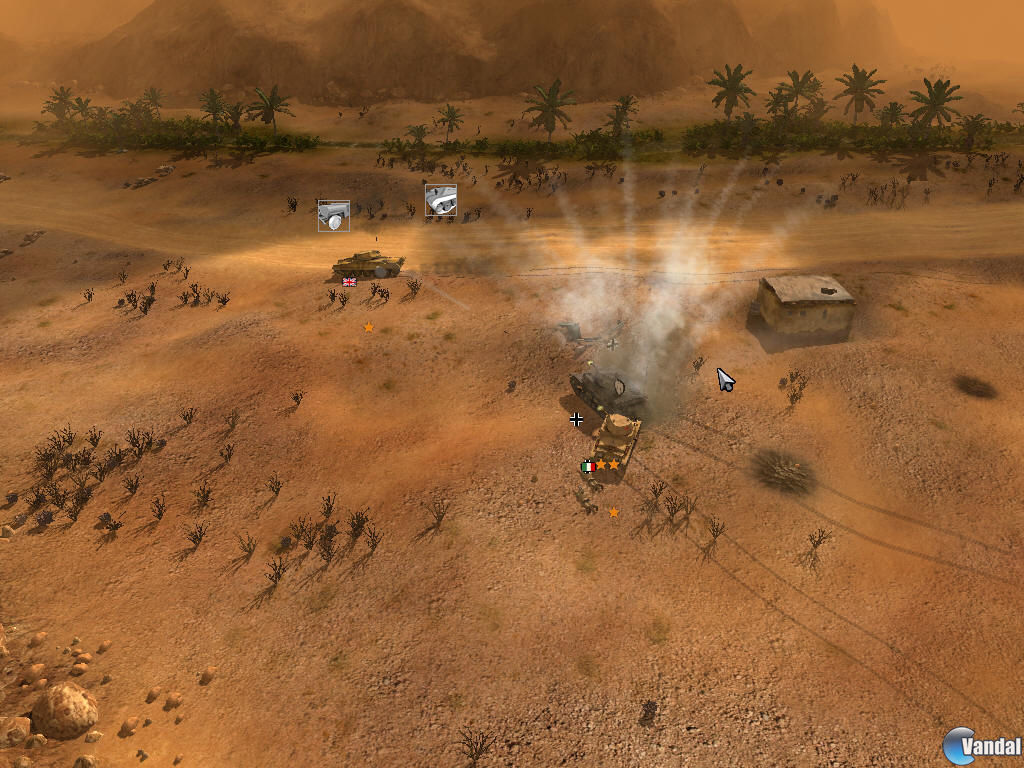 Por supuesto, sus camiones de munición y reparaciones realizarán las mismas funciones que los nuestros, moviéndose por entre las líneas enemigas mientras restauran la vida y munición de sus blindados. No obstante, a estos detalles de calidad debemos sumarles ciertos errores en la inteligencia artificial de nuestras tropas que se bloquearán constantemente, chocándose unas con otras, sin conseguir llegar al punto fijado por nosotros. Este hecho, si tenemos en cuenta que en ocasiones los enemigos nos atosigarán con todo tipo de unidades de combate, hará que en más de una ocasión nuestras unidades caigan en combate, lo que puede resultar de lo más frustrante.