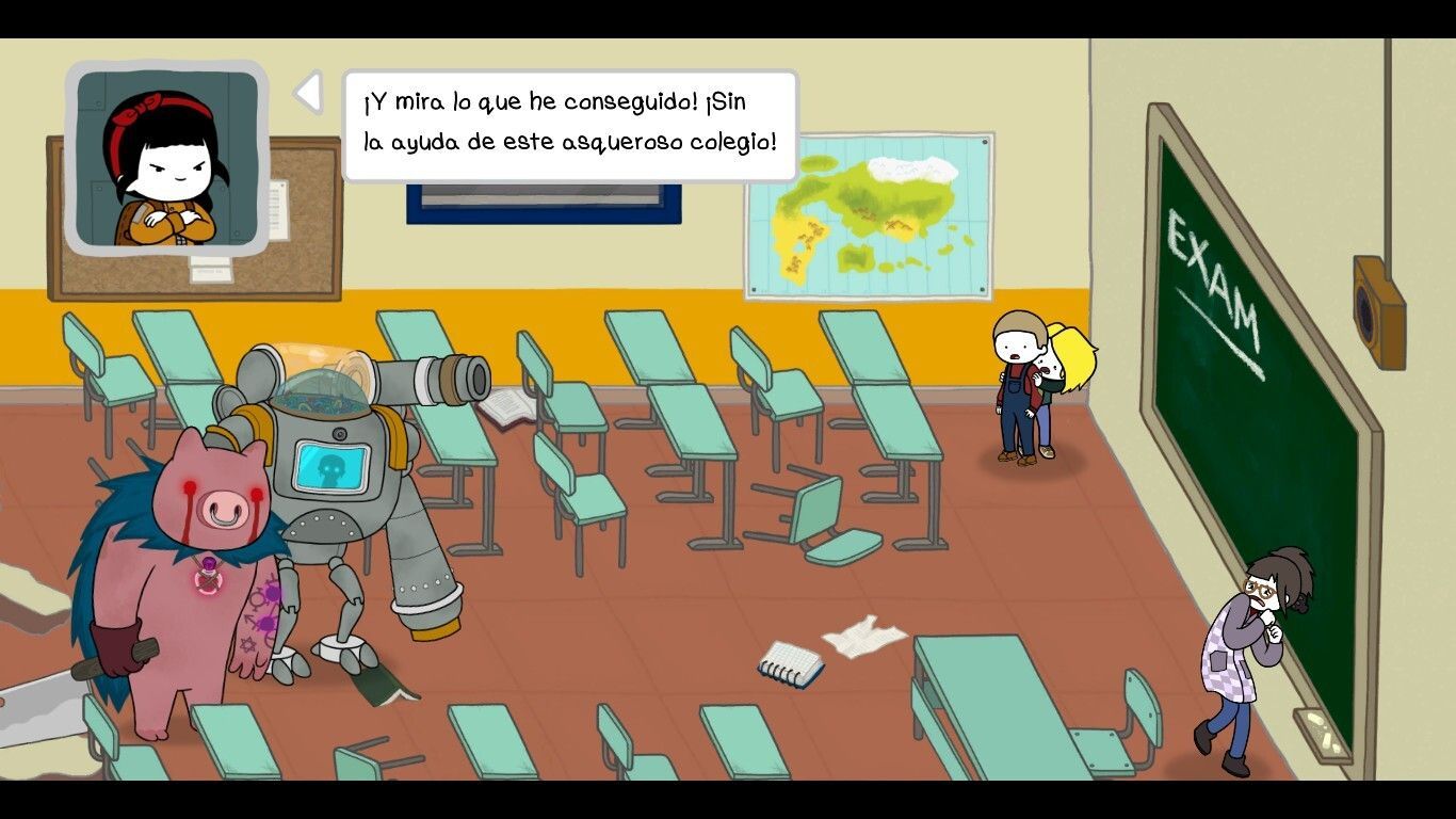 Y esa historia es, quizás, lo que más importancia tiene en el juego, tanto que mucho de lo que haremos en la partida será leer los soliloquios de Nika o sus hilarantes diálogos con otros personajes, momentos de tranquilidad puede llegar a molestar a los que vengan aquí solo por la acción pura y dura. También encontraremos algunas situaciones que requerirán una decisión por nuestra parte, en algunos casos más integradas en el gameplay (como matar o no al director de nuestro colegio) y otras más establecidas como opciones dentro de un cuadro de diálogo.