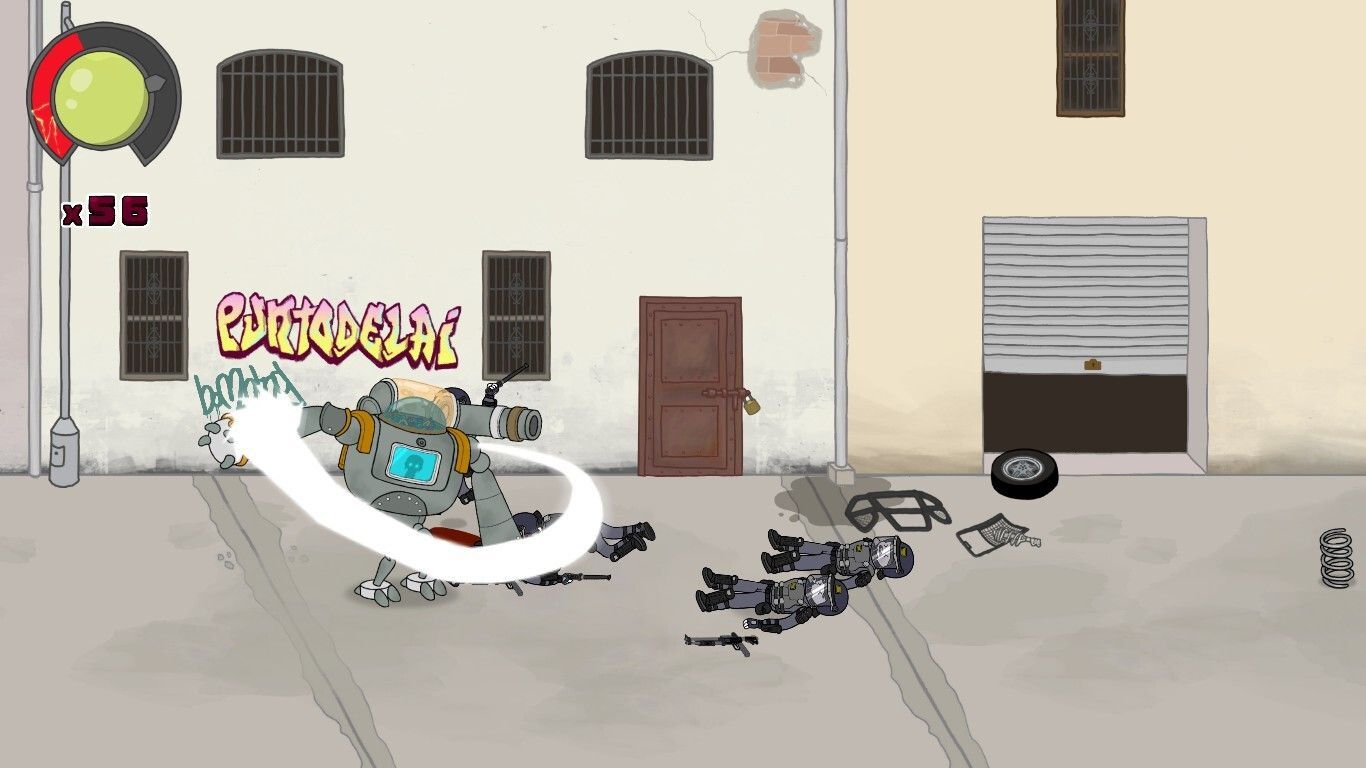 Ambas son personajes controlables en este tercer juego, un título que deja de lado la apuesta por el tono más de aventura gráfica que planteaban los anteriores y da el salto a la acción pura y dura. Colossus Down es un beat'em up en dos dimensiones, si nos ceñimos a los géneros, un yo contra el barrio de avance lateral en el que no controlamos a las niñas, sino a sus alter egos, MechaNika y el Gran Cerdo Sangrante, en una grotesca pero adorable aventura de caos, destrucción y violencia desmedida.