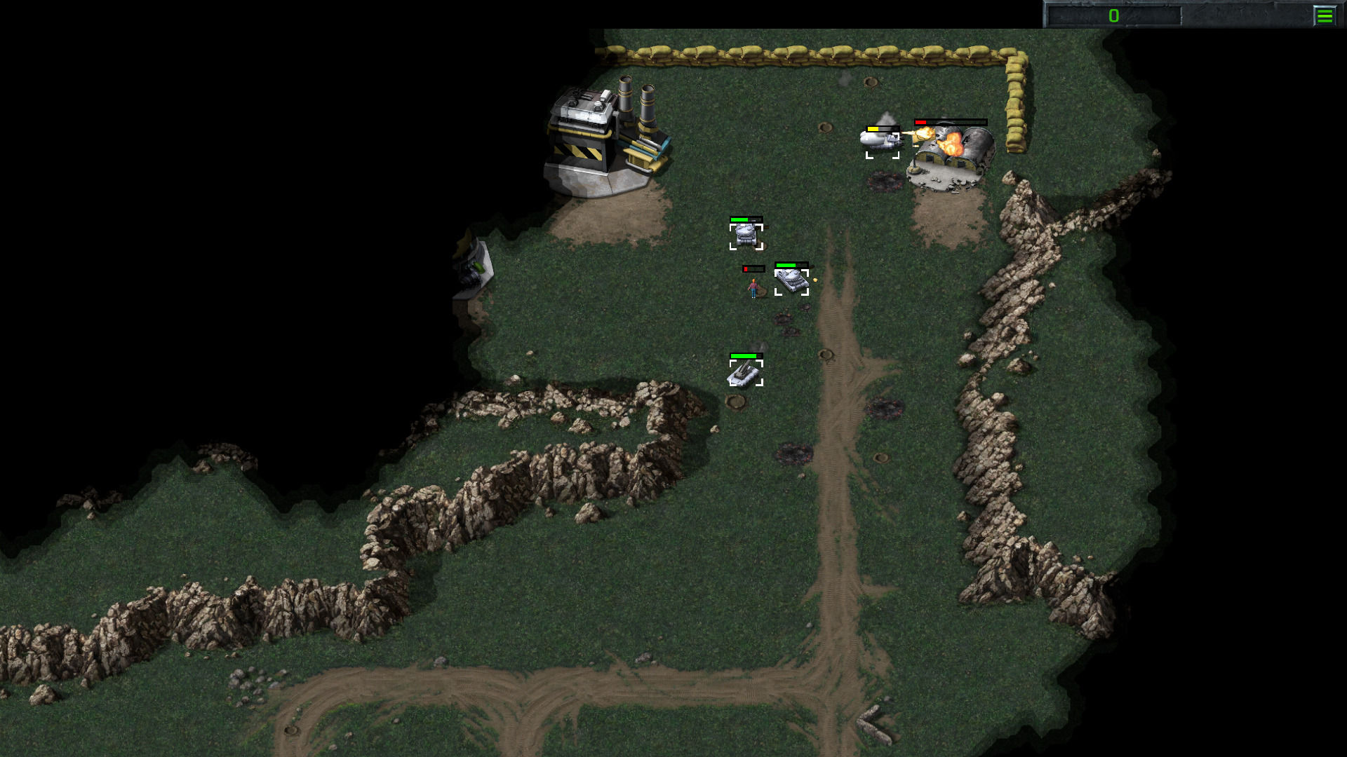 Hablamos, por ejemplo, de decisiones de diseño como ocultar unidades enemigas en árboles en un juego en el que estás constantemente mandando grupos de soldados y vehículos a explorar el mapa sin estar mirándolas directamente. O del hecho de que cuando has seleccionado a un conjunto muy amplio de aliados para ir de un punto A a un punto B, a algunos se les vaya la pinza y no se muevan, tomen caminos más largos o se queden bloqueados – algo que ocurre, también, cuando se ataca a una unidad enemiga con todo nuestro grupo, pues algunos se quedan quietos sin apretar el gatillo. Más frustrante aún es el comportamiento de los vehículos que sirven para almacenar otras unidades. En más de una ocasión hemos intentado desembarcar en una costa sitiada, y al hacer clic sobre el vehículo que almacenaba nuestros soldados, a veces salían todos, otras veces algunos de ellos, y en ocasiones ninguno, lo que era preocupante porque varios tanques nos estaban disparando.