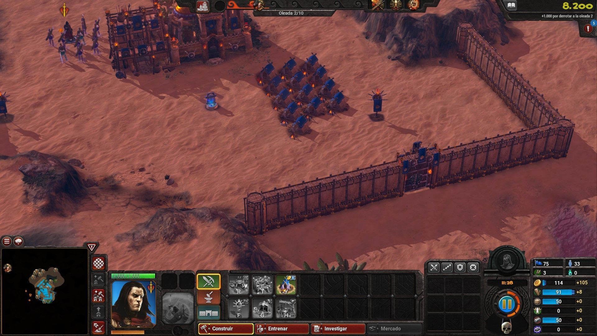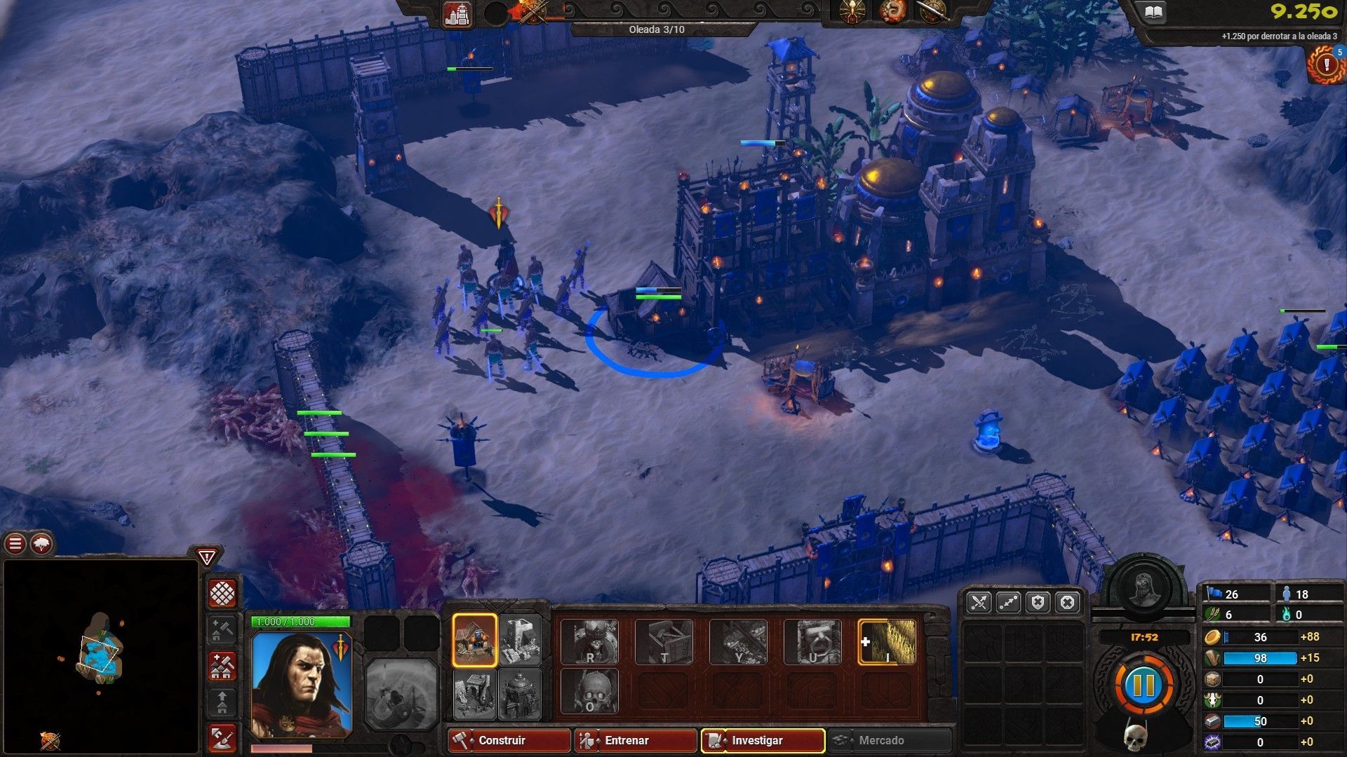 Un aspecto curioso es que el juego, a pesar de ser un título de estrategia en tiempo real cuenta con un botón de pausa que nos permitirá parar la partida para observar el estado del ataque enemigo o planificar mejor las próximas construcciones, un detalle que se agradece.