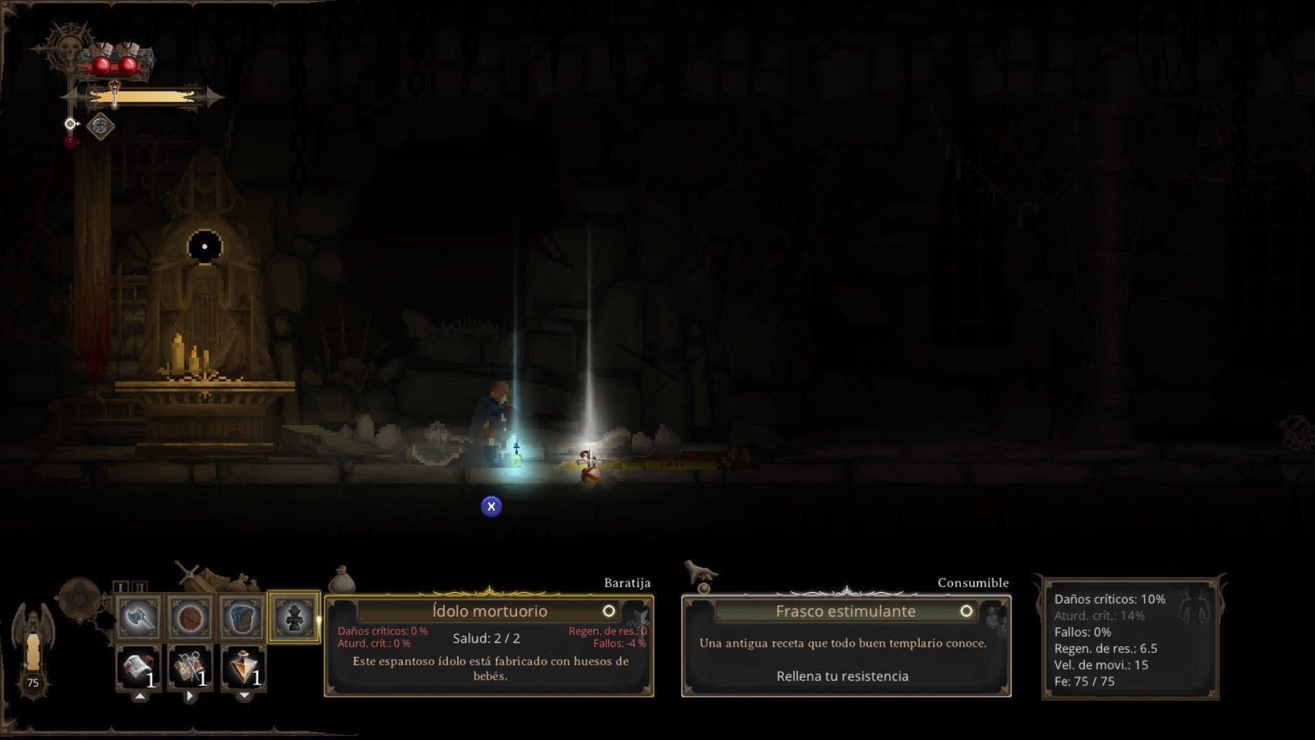Hay numerosas maneras de ganar y perder este recurso, y lo que viva nuestro personaje influirá en ello. Por ejemplo, ser herido casi de muerte por una trampa que no hemos visto puede hacer que deje de ganar fe al matar enemigos, o que tengamos un momento de inspiración y cualquier daño que recibamos nos haga reforzar nuestra creencia para generar más. Se trata de una mecánica muy bien integrada, coherente y que funciona bastante bien, obligándonos a adaptarnos a lo que ocurra en cada partida.