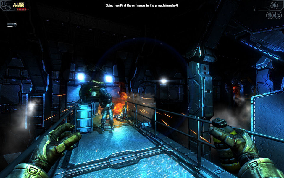 Bajo estas ideas fundacionales, arranca Dead Effect, que dirige -sin medias tintas- hacia el centro de la acción al jugador a las primeras de cambio. Tras probar el sencillo control, y la dinámica de juego -que viene a ser la clásica búsqueda de la puerta correcta, pasillo tras pasillo, matanza tras matanza de enemigos-, empezaremos a vislumbrar ciertas carencias en su campaña para un jugador. Vaya por delante que pese a su algo repetitiva re-utilización de conceptos y su reciclaje masivo de elementos gráficos -de los que hablaremos más adelante-, Dead Effect es un juego entretenido, pero no es muy original -es decir, no descubre la rueda-, pero al menos intenta mostrar cierto argumento entre tanta jerarquía por niveles y fases marcadas por la consecución de objetivos y recolección de dinero.