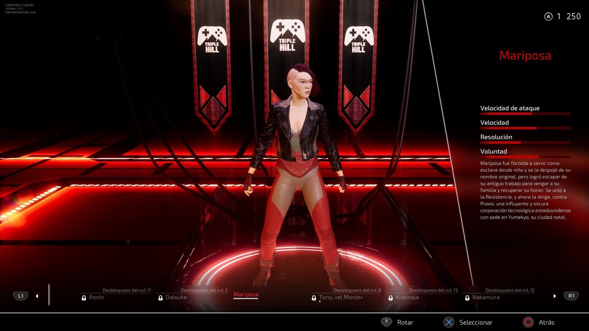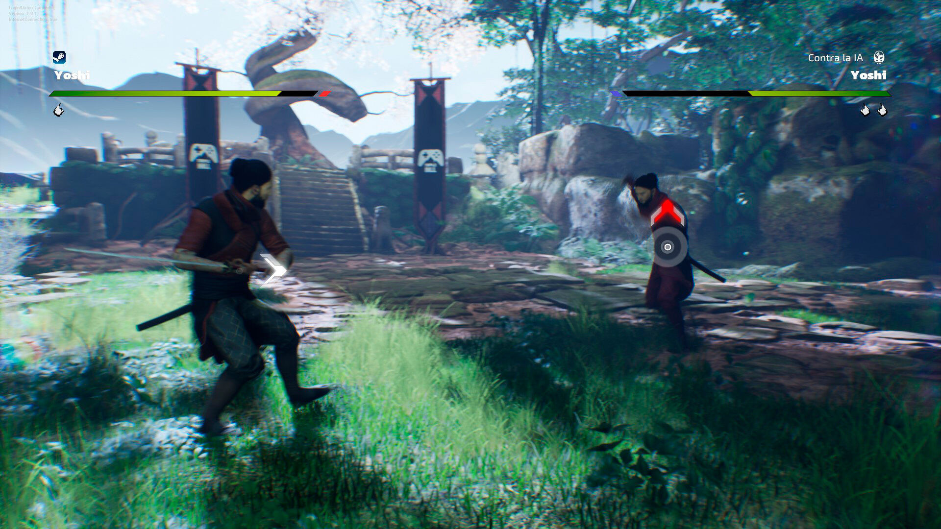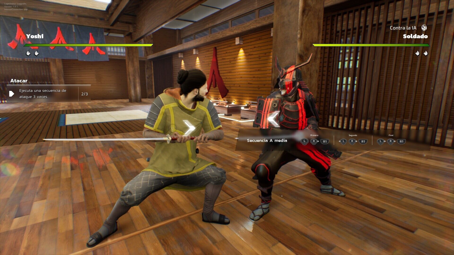 El sistema de combate tiene alguna otra particularidad más propia de juegos de rol y acción. Esa barra que aparece en la parte superior no es la salud sino la resolución, que es similar a la resistencia o stamina: se consume con las acciones y se regenera lentamente, aunque acertar con un ataque proporciona una buena cantidad. Con la barra agotada no estás paralizado, pero los ataques se ralentizan y el bloqueo automático se desactiva. Si te ves en una situación comprometida lo mejor es marcar distancias con el rival hasta que se recupere –los entornos son amplios pero no infinitos-. Bajo este indicador tenemos las "vidas", el equivalente a las rondas.