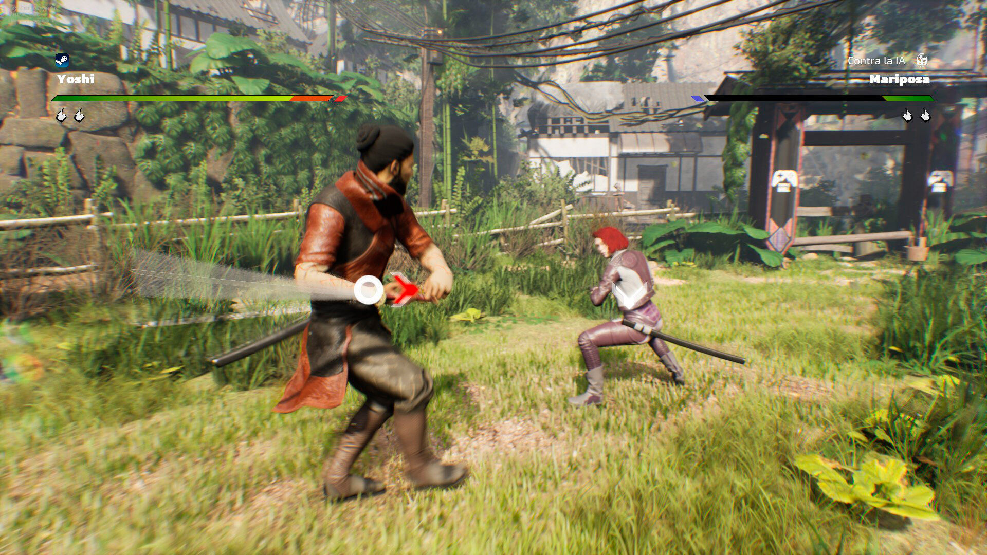 La sensación general nos da una de cal y otra de arena. Tiende a ser realista, así que no esperes un control frenético de hack´n slash, juggles y mucha pirueta; es más un control "pesado" en el que cada ataque puede suponer la victoria o la derrota. La parte positiva es que un combate entre dos buenos jugadores alcanza una gran tensión: choques de espadas, amagos y el miedo a cometer un error que suponga la derrota. Por otro lado, y este es uno de los problemas de Die by the Blade, es que la mayoría de rondas se pueden terminar en cuestión de segundos, lo cual resta cualquier atisbo de estrategia. Por eso decíamos que no hay muchos juegos inspirados en Bushido Blade, incluso si la idea suena bien sobre el papel eso no significa que sea divertida -o no más divertida que un SoulCalibur-.