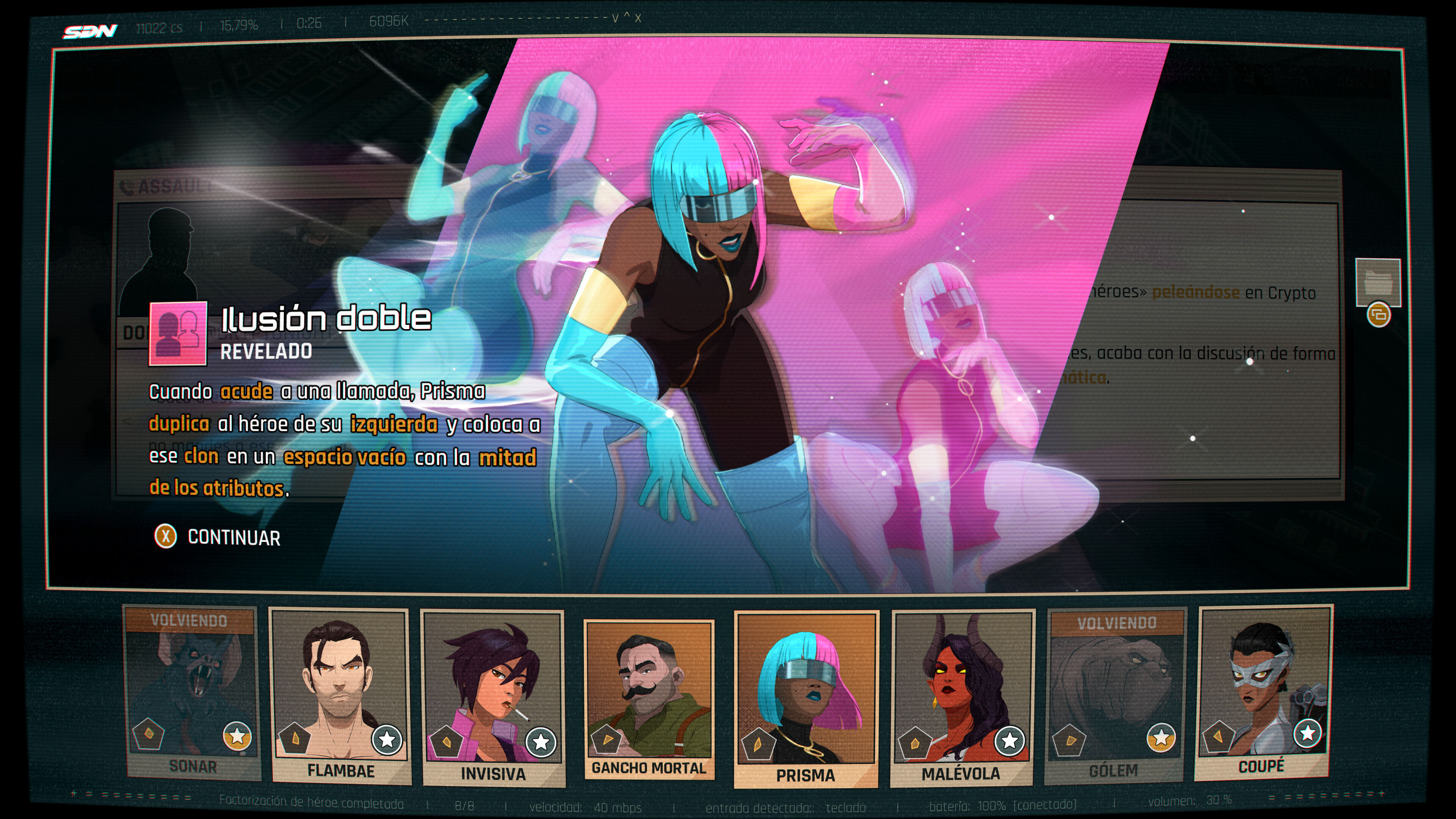 También hay que elegir con cabeza porque el videojuego representa bien la labor de los operadores telefónicos: entran más peticiones de las que nuestro equipo puede cubrir. Así que, además de tener en cuenta sus atributos, hay que gestionar cuánto tardan en ir y volver de una misión, si están descansando o si han sufrido algún daño al fallar un encargo. Además, cada héroe tiene habilidades propias que influyen mucho en la planificación, y a lo largo de las partidas suben de nivel, mejoramos sus atributos y consiguen nuevos poderes.
