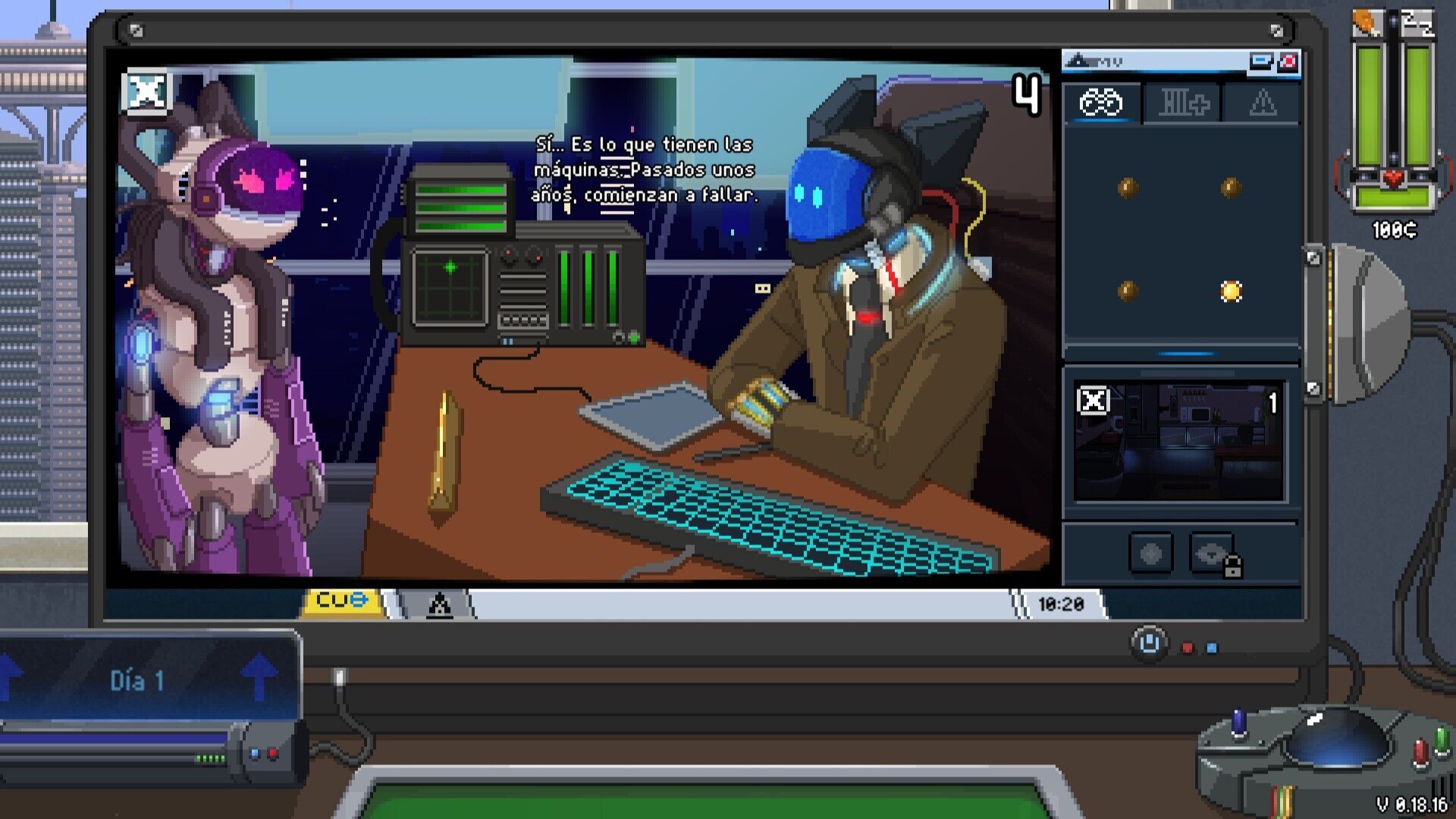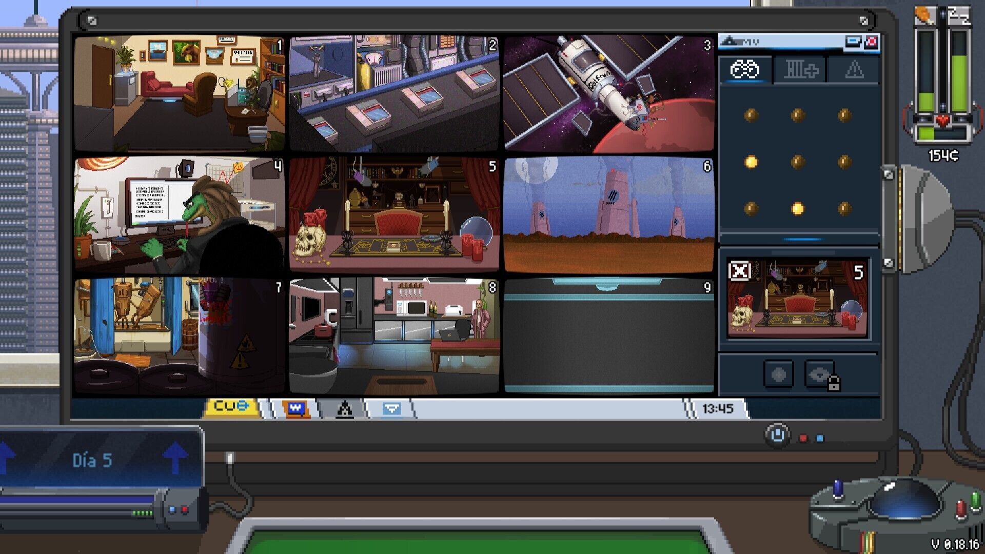 En cuanto a mecánica, 2099 vuelve a introducirnos en el club con unas normas concretas: inspeccionar a los sujetos e ir adquiriendo un número determinado de cámaras cada pocos días para subir de nivel. Comenzamos con un puñado, y aunque no todas ofrecen algo interesante, sí habrá al menos un par con actividad.