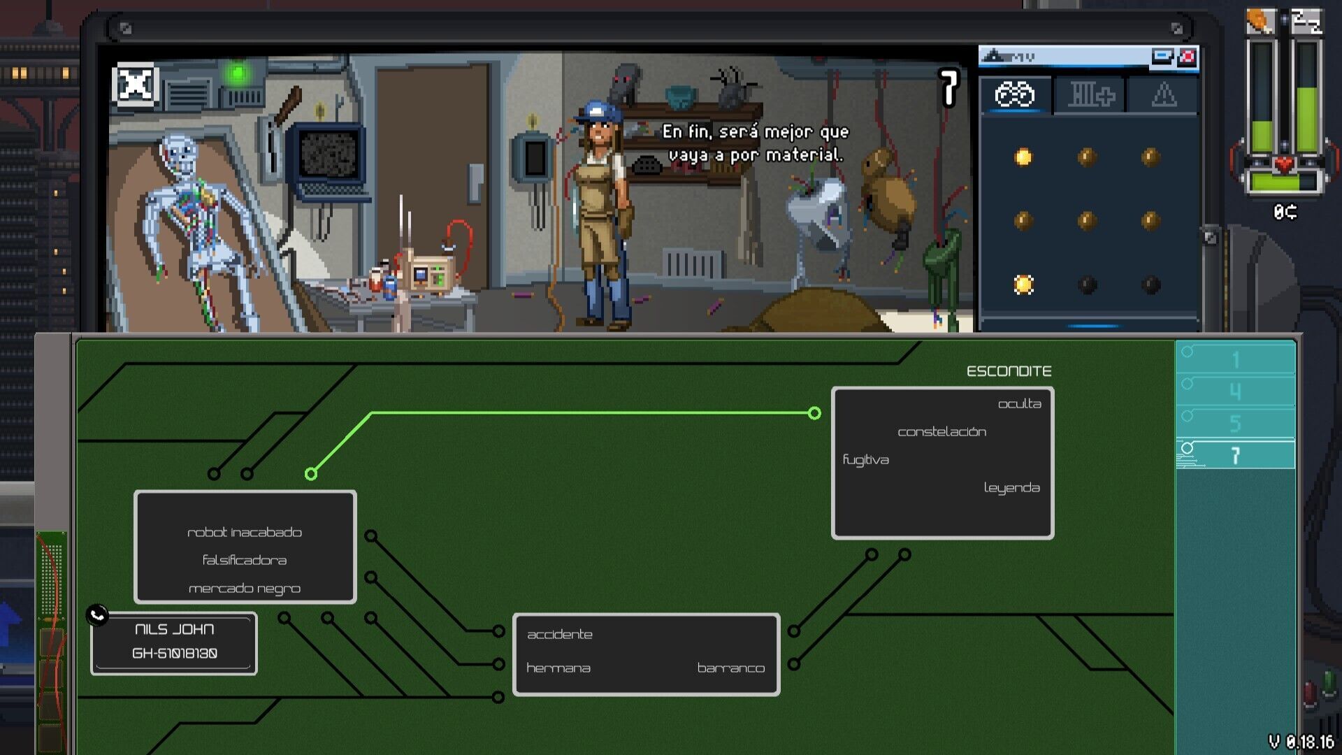 Aunque no es un roguelite como tal –incluso si las cámaras son aleatorias y nunca sabremos con exactitud qué nos vamos a encontrar-, nos gusta pensar que con cada reintento tenemos una ayuda extra que nos lo pondrá un poco más fácil en la siguiente partida, que en este caso no es ni más ni menos que saber cómo extraer datos de jaulas conocidas más rápidamente o los horarios de cada mono. No es que el juego nos lo ponga más fácil, sino que somos mejores y ese misterio que teníamos medio resuelto ahora nos llevará menos tiempo, y eso permitirá prestar más atención a otras jaulas.