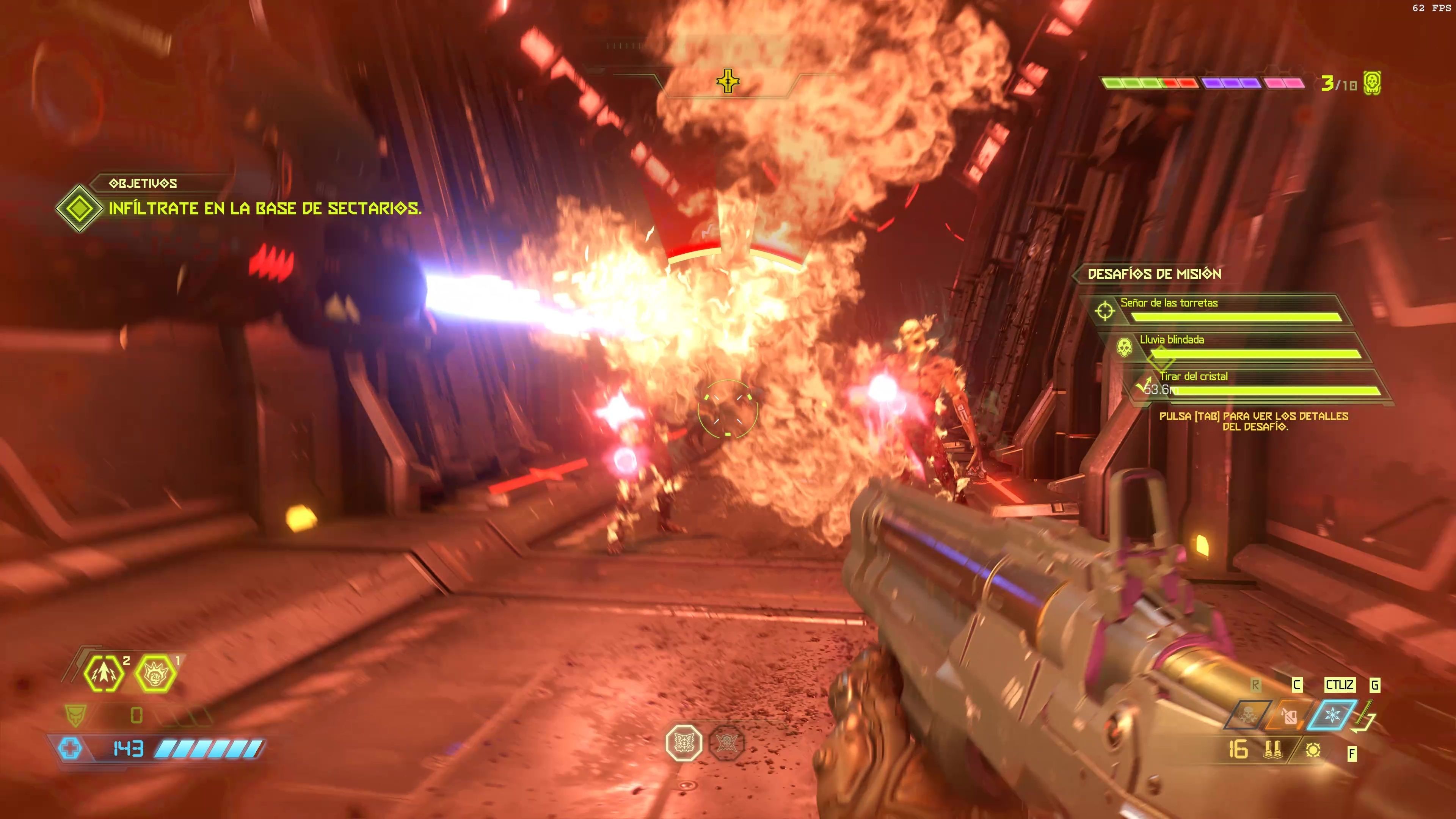 Para lograr estas masacres, además de las excelentes mecánicas de disparo que caracterizan los juegos de id Software, también debemos de dominar ciertas mecánicas propias de Doom Eternal, haciendo especial hincapié sobre sus tres pilares fundamentales que, para el que os escribe, son las ejecuciones, triturar a los enemigos con la motosierra o verlos arder y consumirse gracias a un uso efectivo de nuestro lanzallamas.