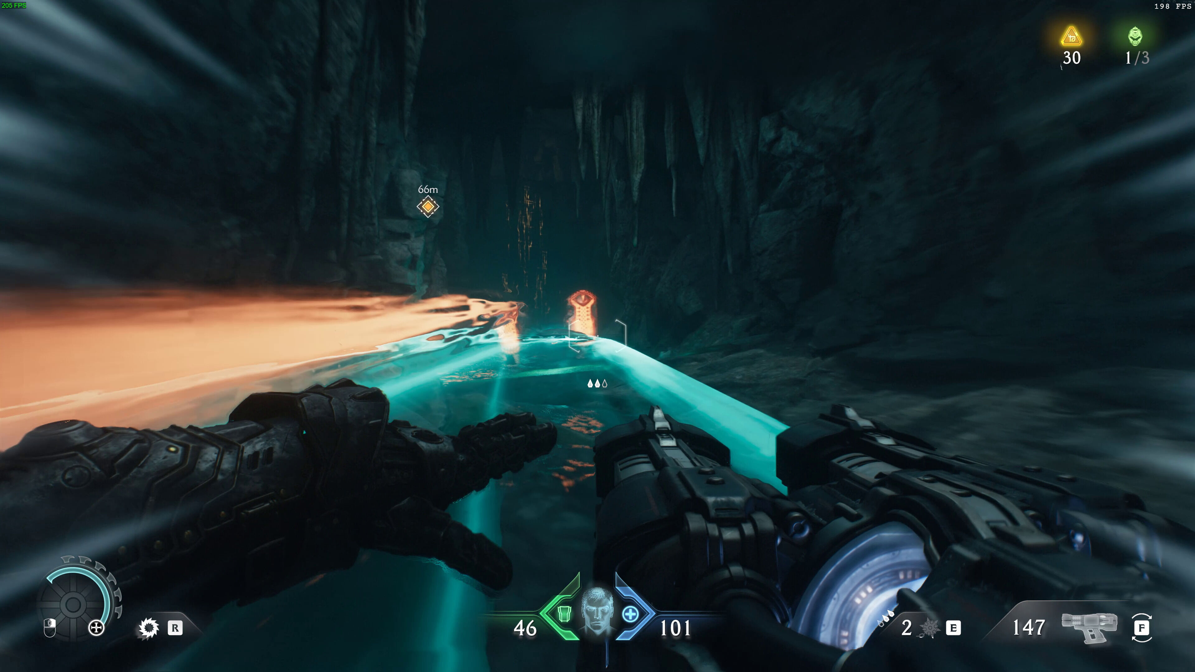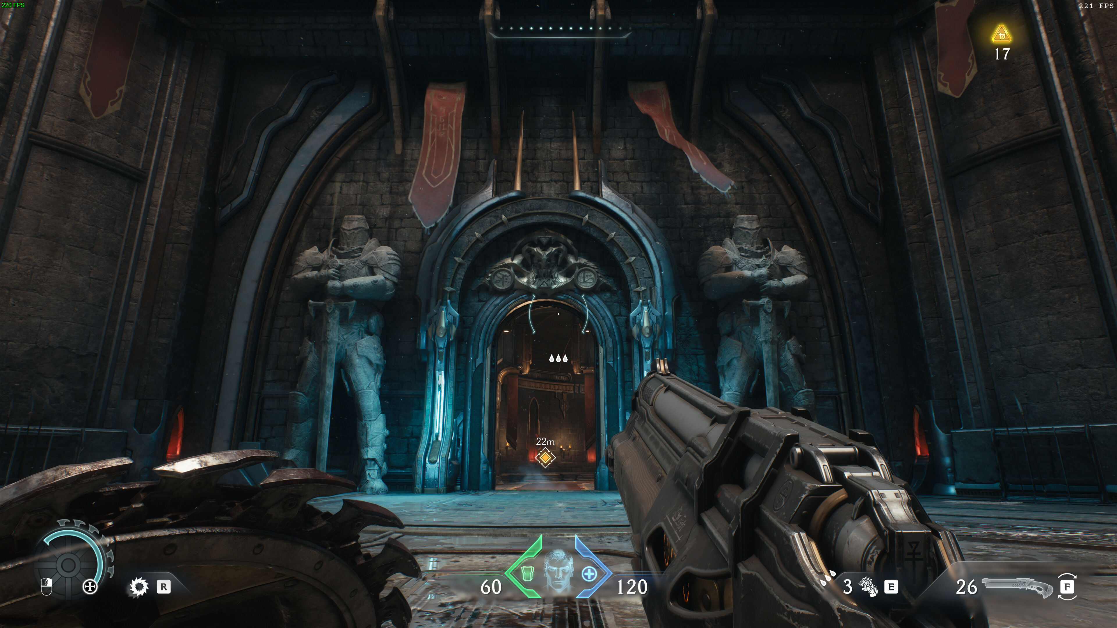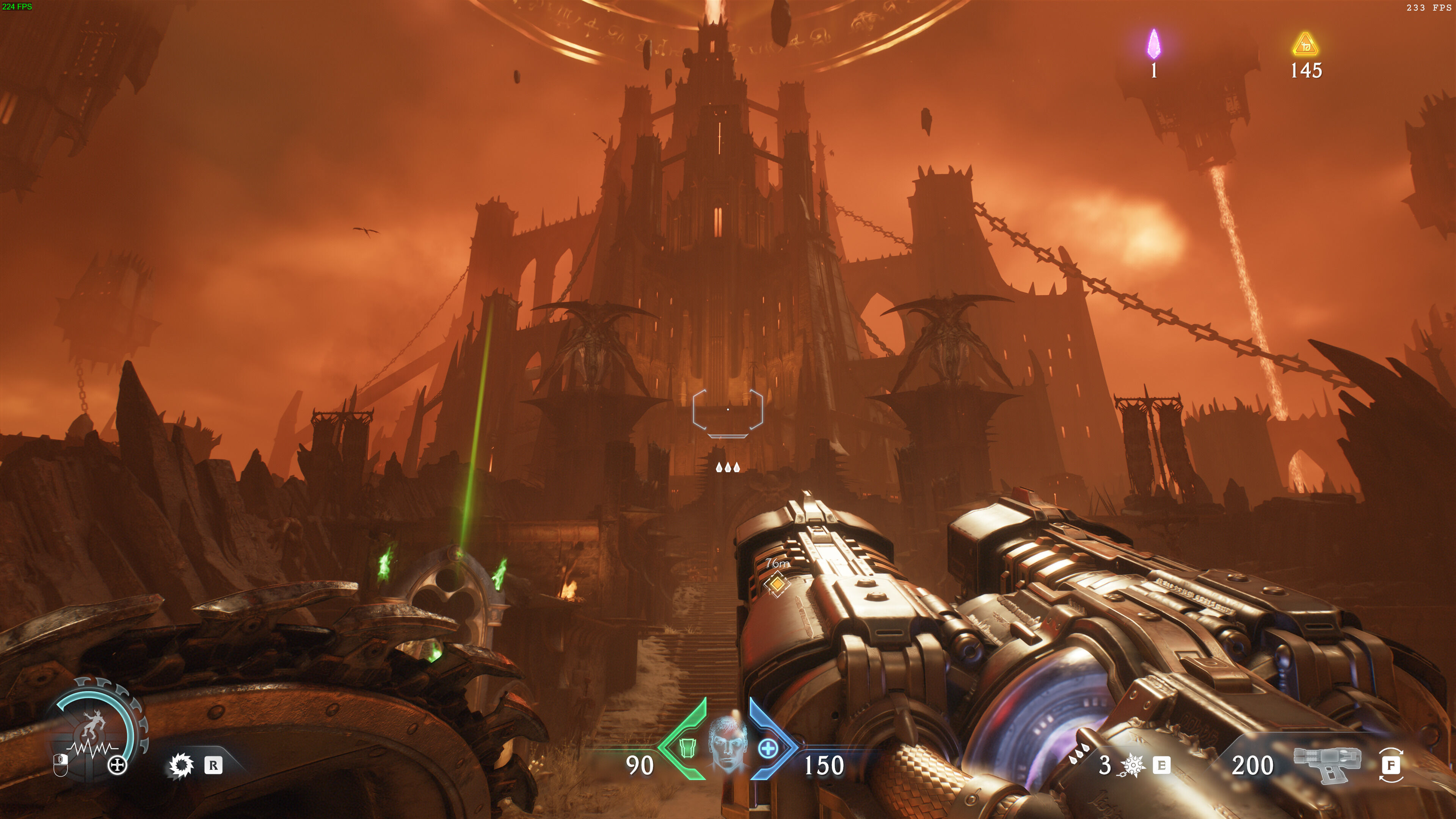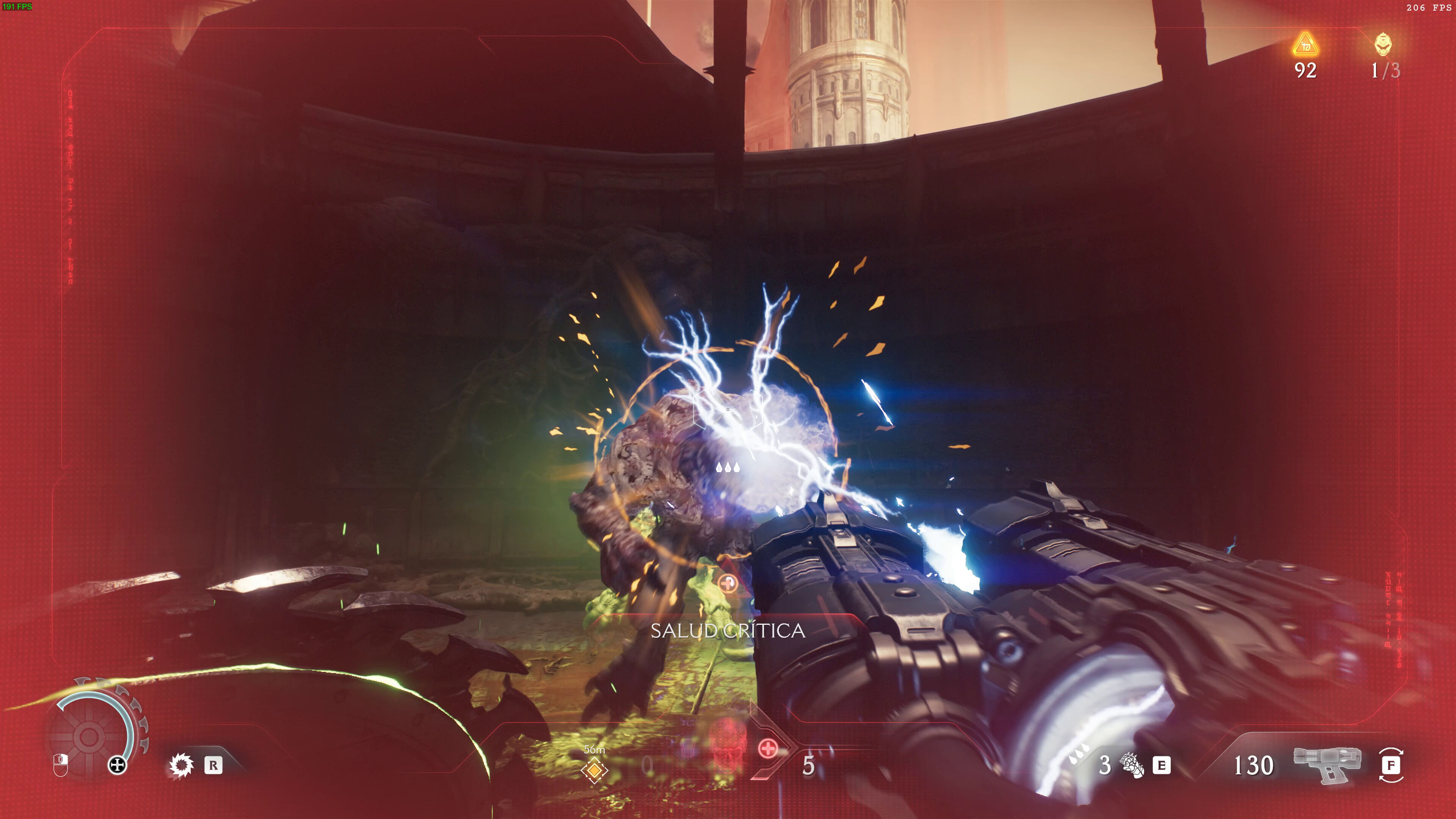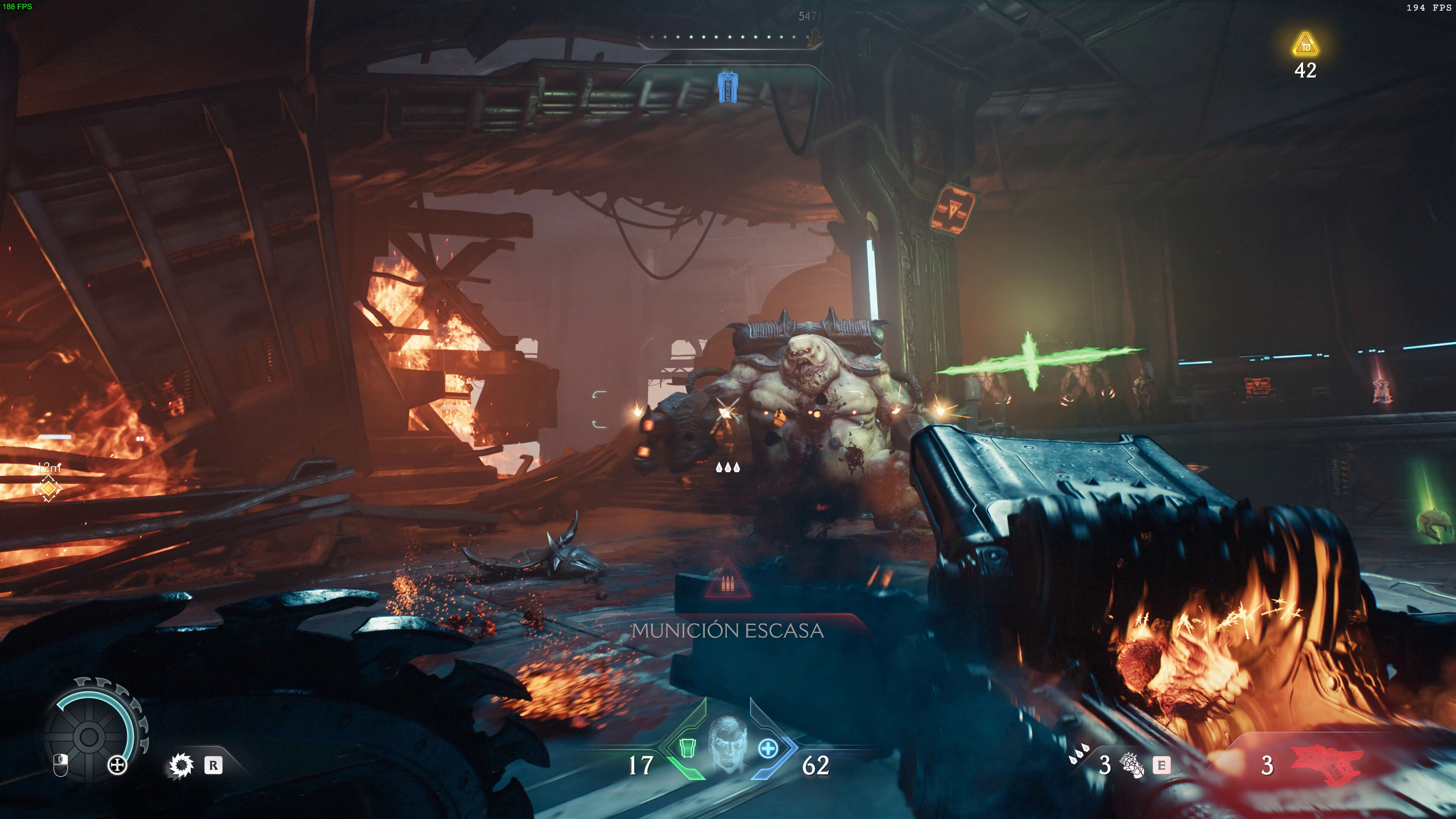 Si hablamos de rendimiento estamos muy satisfechos con el juego de idSoftware. En nuestro PC principal de sobremesa equipado con una NVIDIA GeForce RTX 5080 junto a un procesador Ryzen 5900X, 64 GB de RAM, Windows 11 y almacenamiento SSD hemos podido jugar a 4K con gráficos al máximo y path tracing utilizando DLSS en modo calidad y generación múltiple de frames para obtener en torno a los 200 FPS en casi cualquier situación y sin notar errores evidentes en la latencia o en la visualización de texturas. Por otro lado, en un portátil con una GPU NVIDIA GeForce RTX 4060, procesador i9-14900HX y 32 GB de RAM hemos jugado a 1080p, en la máxima calidad gráfica, DLSS 3 y generación de frames simple en torno a unos 120 FPS confirmando la buena optimización del juego en ordenador.