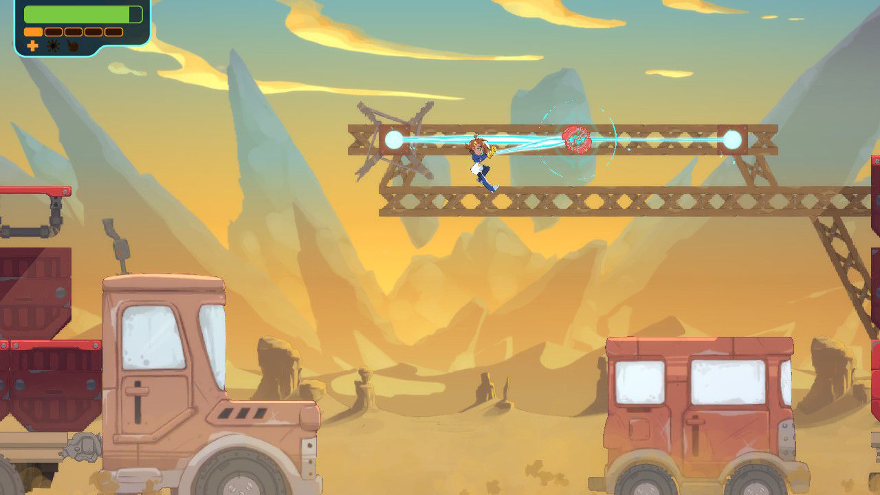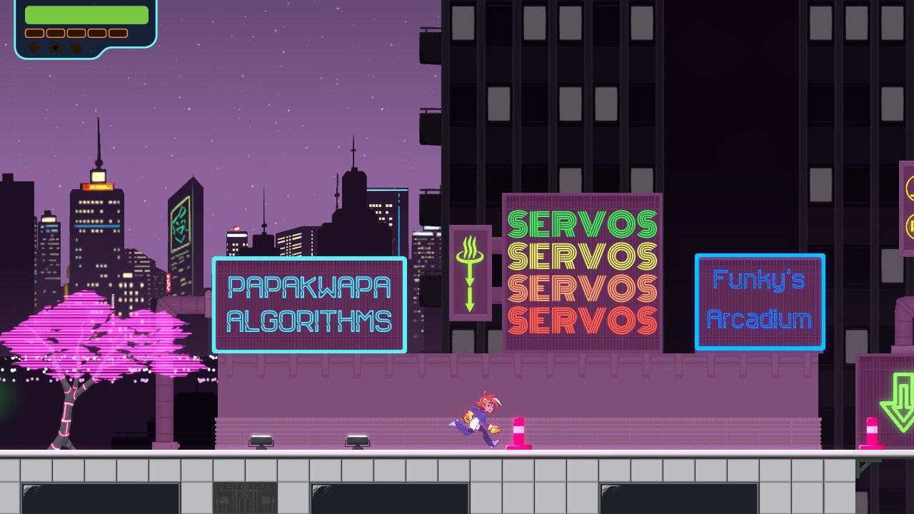 Lo primero, las fases de acción y plataformas. Zahra, nuestra protagonista, es capaz de saltar y luchar con la habilidad de una especie de gancho de protones, que nos permite agarrarnos a ciertas superficies o agarrar ciertos objetos. Esto, unido a un muy buen diseño de escenarios, ofrece niveles muy interesantes y divertidos, con el nivel de desafío justo para ser emocionantes sin llegar a ser frustrantes.