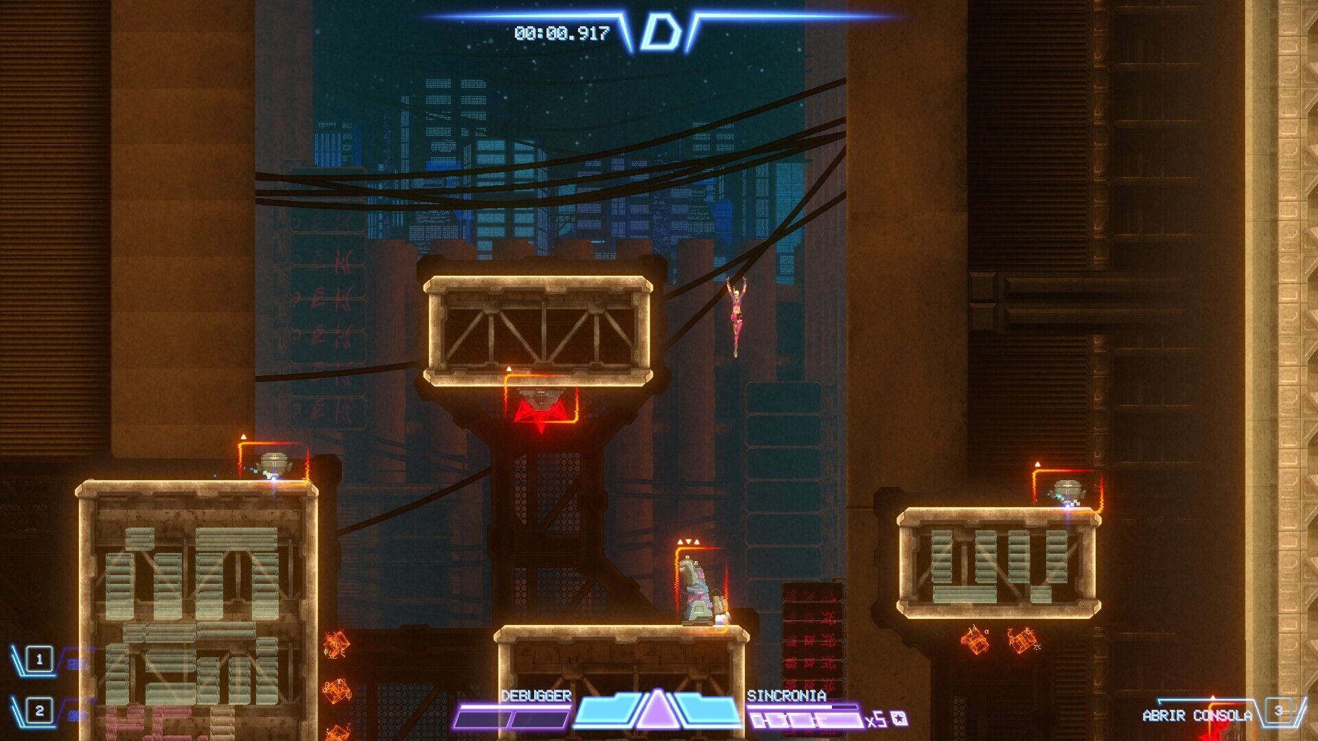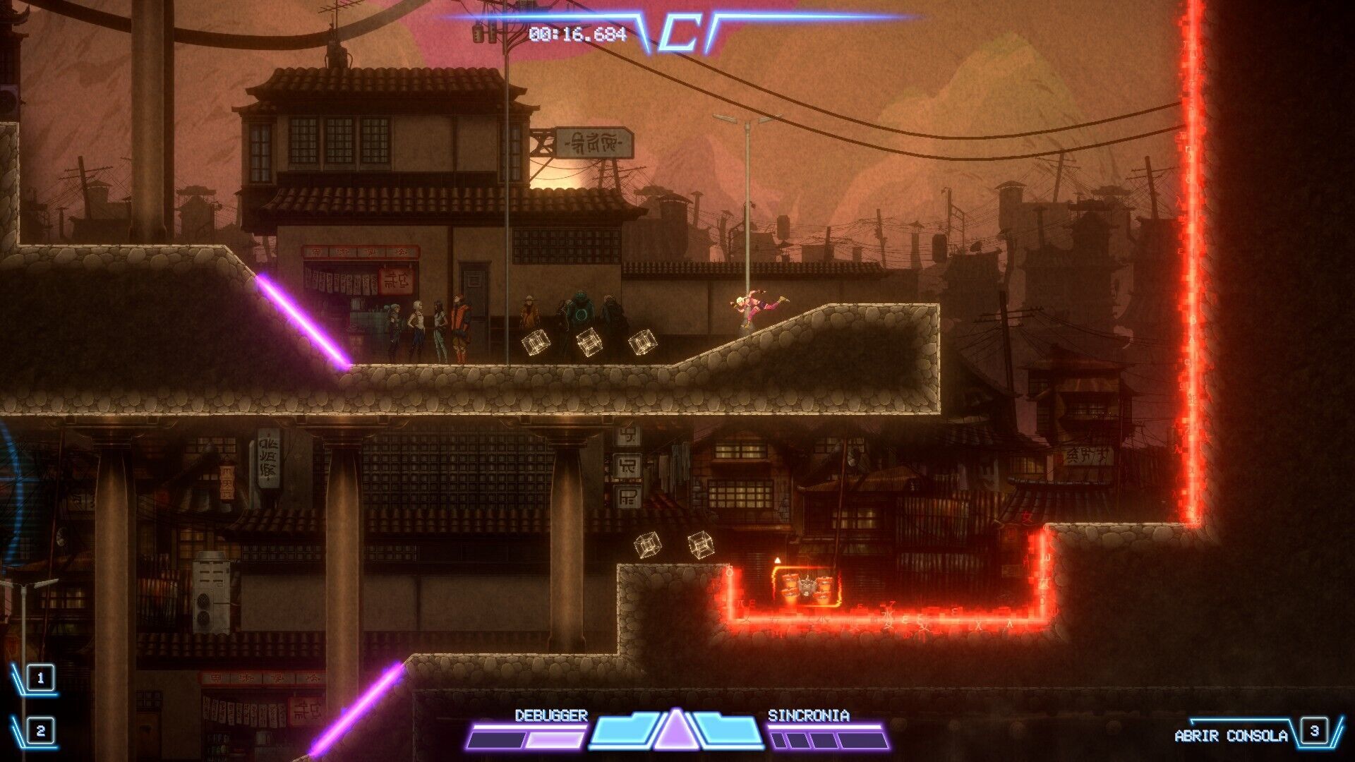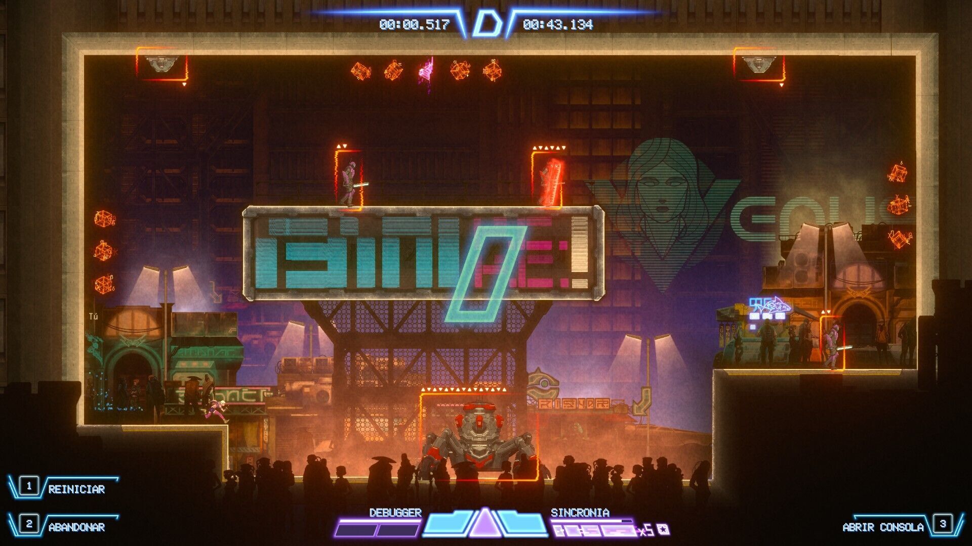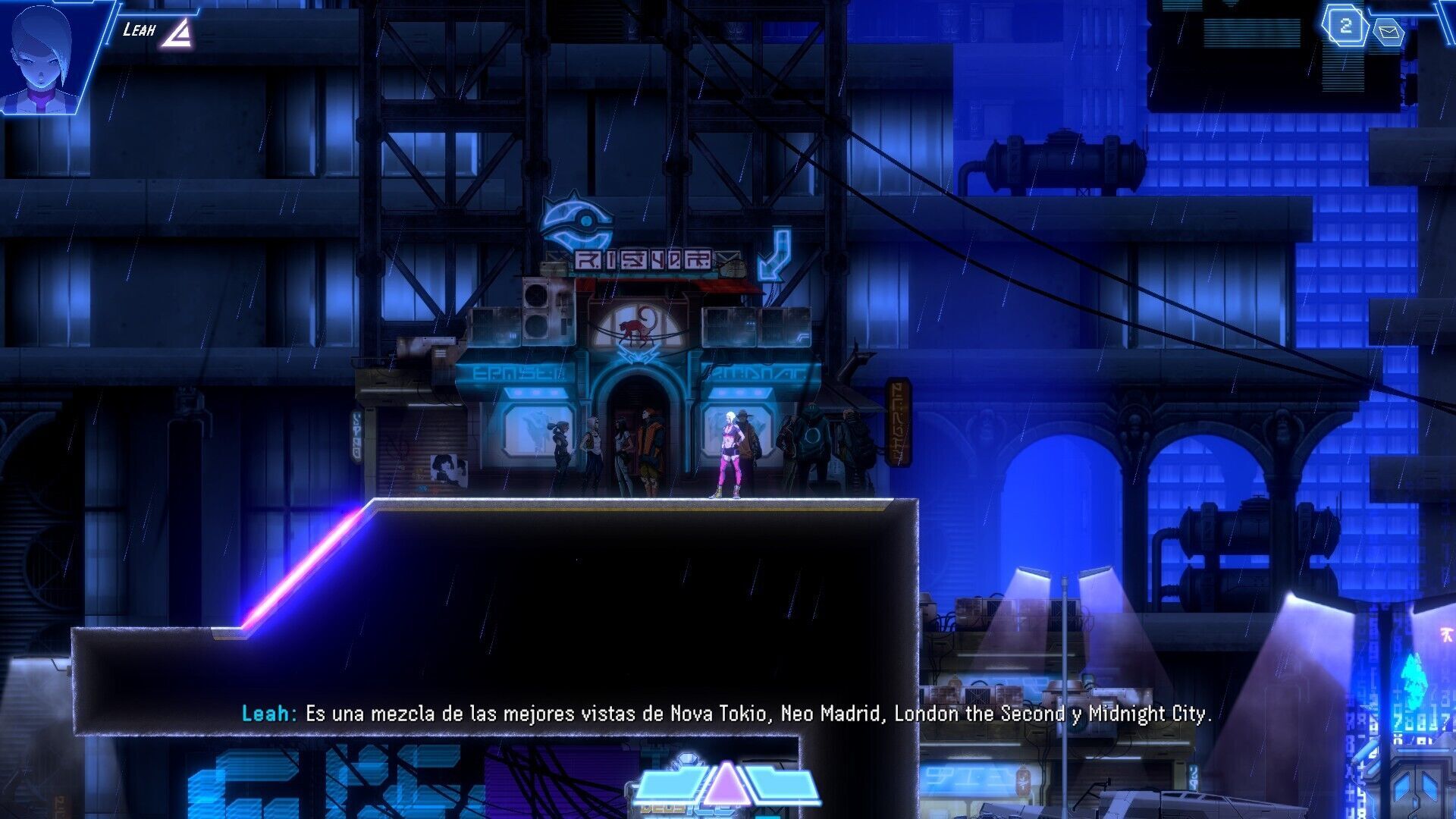 Entre sus influencias –en temática o gameplay- han citado Ghost in the Shell, Blade Runner, Blame, Sonic, Celeste, Katana Zero, Geometry Dash y Dustforce. En esencia, plataformas rápidos bajo la capa de pintura ciberpunk. Esto va acompañado de una banda sonora de Juan Ignacio Teruel Torres (Aeterna Noctis y Summum Aeterna) con el esperable toque electrónico, si bien hay melodías mucho más tranquilas para los momentos fuera de los desafíos; nos ha parecido que quizás le falta algo de más presencia, pero que no se malinterprete, es una buena banda sonora. Como curiosidad, la conocida pianista y streamer Elesky interpreta la música con una Piano Collection que también se puede escuchar dentro del juego.