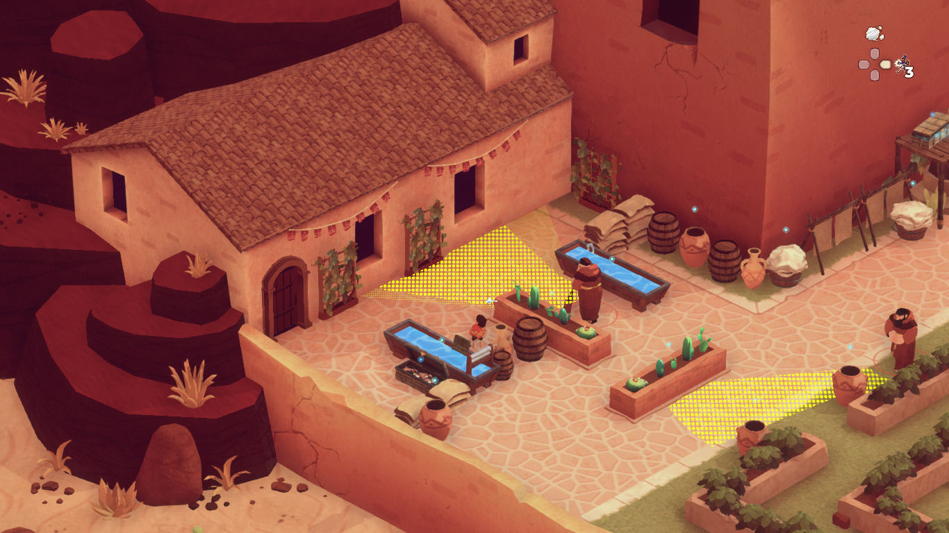 Nuestra perspectiva de los escenarios es en vista isométrica, lo que nos permite tener cierto control sobre las cosas que ocurren en él: qué recorrido realizan los enemigos, qué caminos hemos de tomar, dónde hay un punto de control… Además de movernos por el mapa, también podremos utilizar una especie de vista de pájaro que amplía un poco más la visión y da dos señales importantes: el cono de visión de los enemigos y los objetos con los que podemos interactuar.