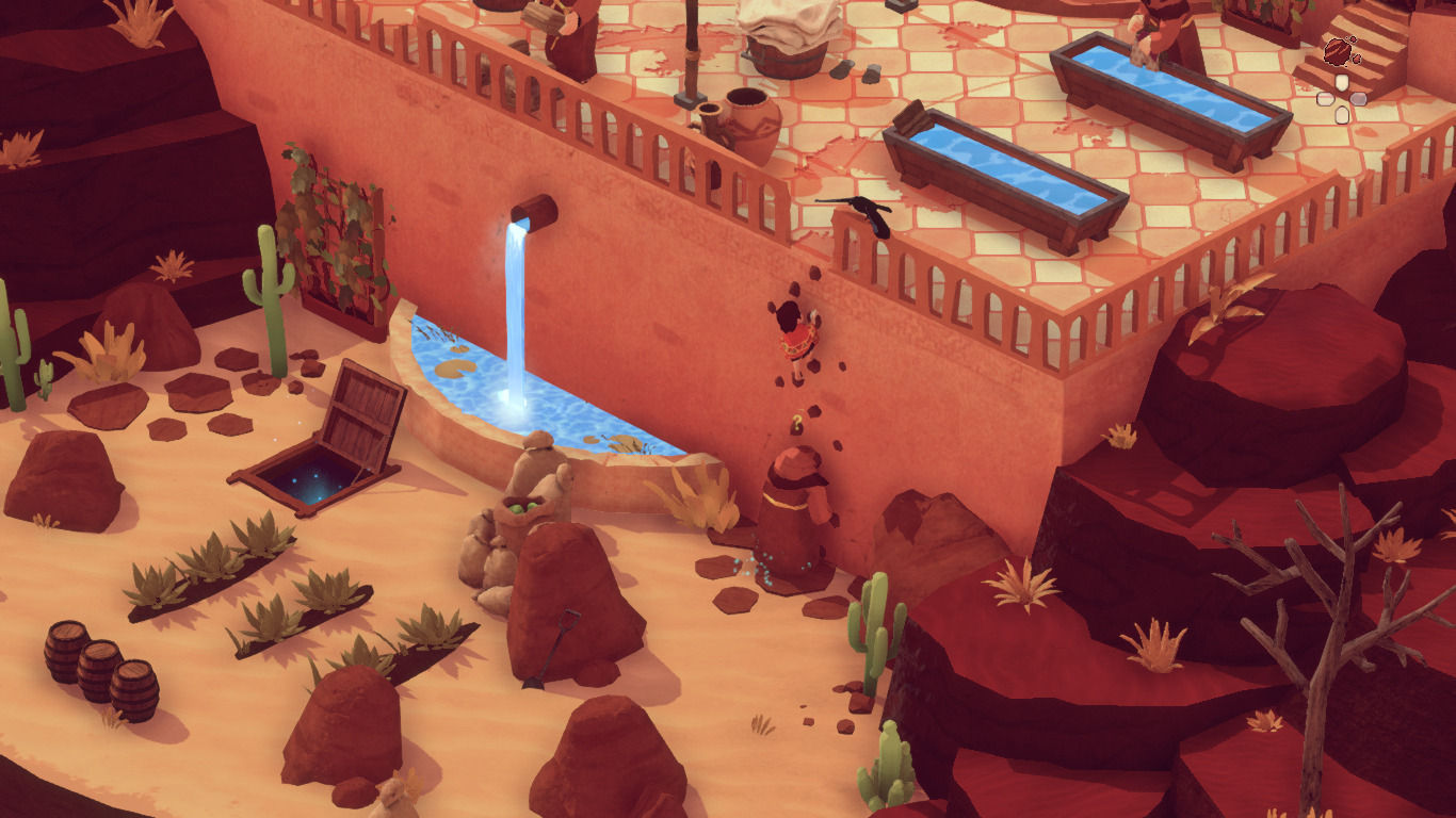 Lo mejor, sin duda, es su apartado visual. Ya cuando lo vimos por primera vez nos encandiló con sus paisajes de tonos tierra y sus modelados low-poly que al mismo tiempo se combinan con escenas en dos dimensiones de estilo crayon. Jugarlo ahora, verlo en movimiento, no es menos placentero. Además aprovecha para contar una historia, muy de soslayo y sin lenguaje verbal, sobre la corrupción, el amor familiar y el compañerismo; algo muy blanquito para darle una excusa a las mecánicas de sigilo pero que funciona para sentir algo cuando vemos la escena final.