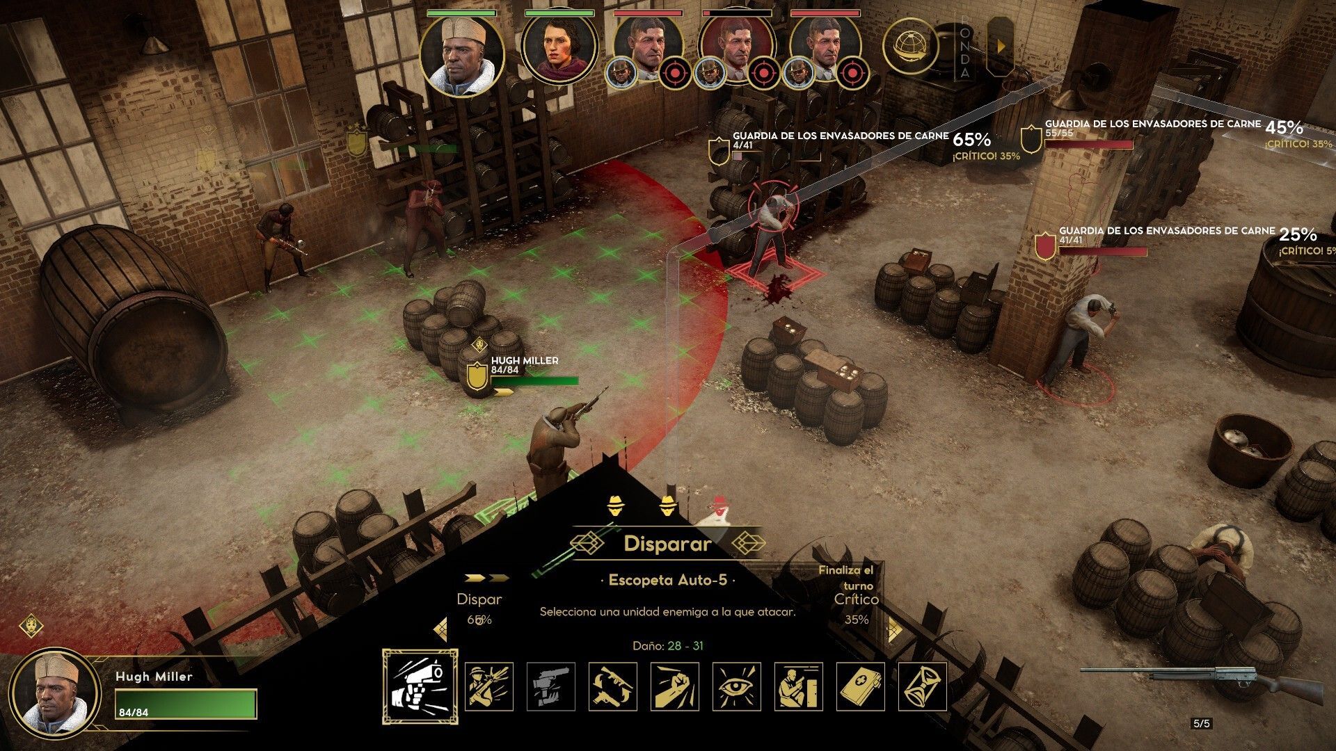 El segundo apartado de la jugabilidad son los propios tiroteos. No todo se va a resolver con buenas palabras, y los desarrolladores nos recuerdan que podemos tener alianzas temporales, traiciones y un poco de ambas estrategias, pero al final sólo puede quedar un rey o reina de Chicago. A veces no queda más remedio que entrar por la fuerza en un local, acabar con todos los enemigos y enfrentarse a las consecuencias –como los jefes de otras bandas-, y aquí tenemos una jugabilidad de estrategia similar a XCOM, bastante competente y divertida, aunque tampoco excesivamente original: los mapas están divididos en casillas y las unidades se desplazan en un área concreta, se colocan detrás de protecciones –seguras o parcialmente seguras- y disparan, recargan, utilizan botiquines y demás acciones disponibles. Busca esquinas, rodea a tus enemigos para que no encuentren una posición ventajosa y haz buen uso de tus recursos con estados negativos –veneno, hemorragias…-; lo hemos visto en multitud de títulos y siempre es divertido, pero no encontrarás nada realmente novedoso que lo haga destacar sobre la media.