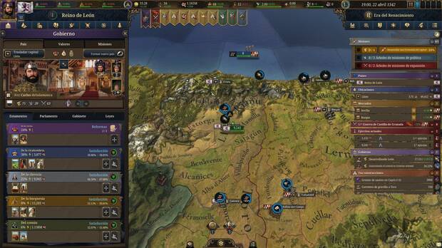 Otro aspecto del que nos gustaría hablar para finalizar es el rigor histórico, habitualmente un pilar básico en los juegos de Paradox. De entrada, en nuestras partidas hemos encontrado algunos errores o inexactitudes. Hay decisiones que quizás se hayan tomado por simplificar, como las diferencias legales entre los reinos de León y Castilla —aunque estuviesen bajo la misma corona—, pero también hay otros errores más de bulto, como la elección de ciertas capitales que no se corresponden con la realidad. Siendo un juego desarrollado en su estudio de Barcelona, hubiésemos agradecido un poco más de mimo hacia nuestra historia. No afecta a la jugabilidad y sabemos que es café para muy cafeteros, pero queríamos comentarlo. Por otra parte, la ausencia de algunos detalles en las zonas más alejadas de Europa nos hacen prever que se irán completando con DLC en el futuro, una política bastante habitual en Paradox.