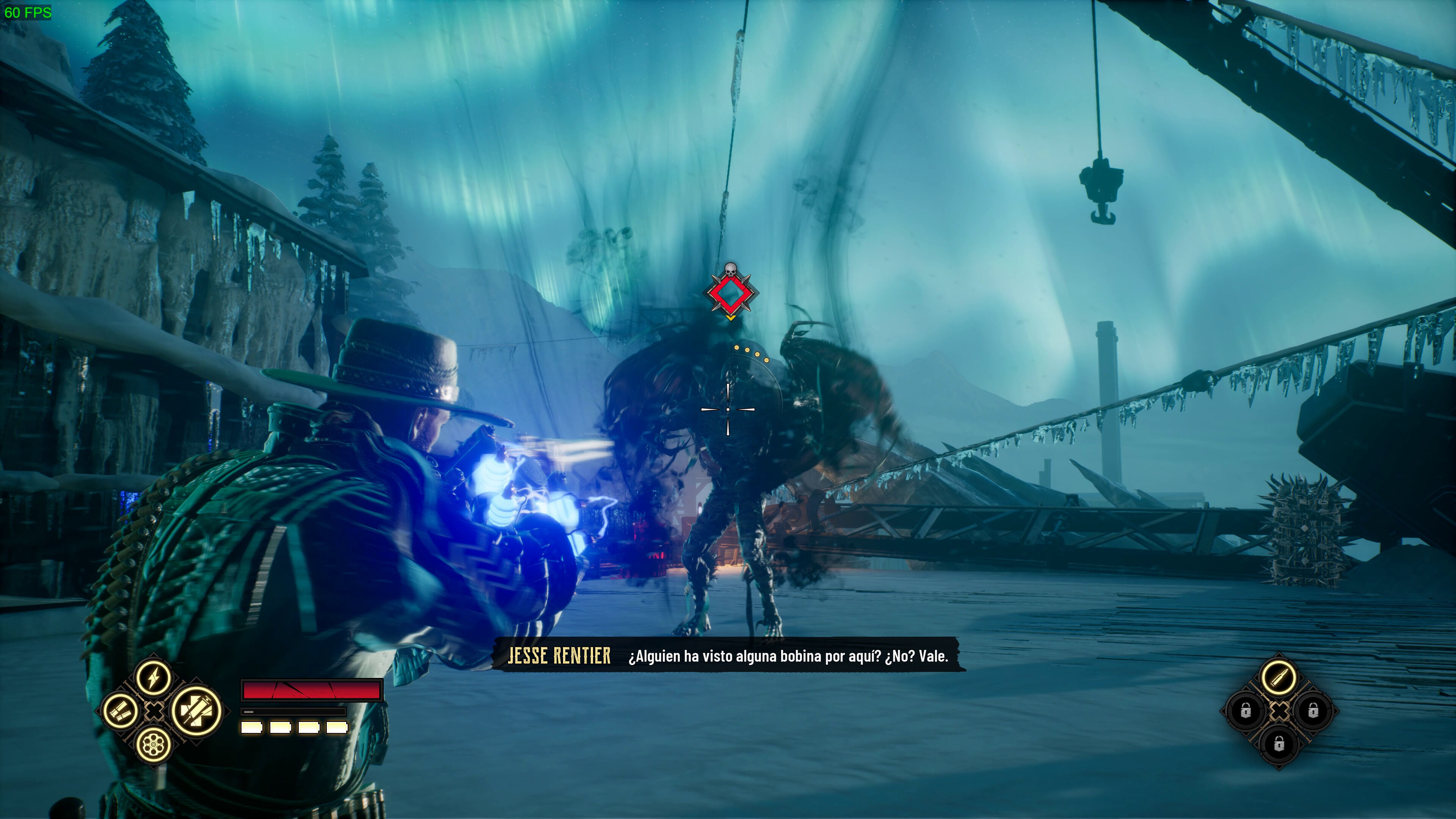 A nivel técnico Evil West es un título al que no le cuesta convencernos de que es bueno a nivel visual, de efectos, o texturas, sobre todo cuando hay buena iluminación en las escenas, en zonas claras o diurnas en las que puede lucir todo su potencial mientras que, en las zonas más oscuras, la elección de la iluminación, el brillo o los tonos rojizos hacen que el título no se vea tan nítido como es en realidad, mientras que algunas animaciones sí que cojean y son un poco toscas, sobre todo las que están relacionadas con elementos de los escenarios como, por ejemplo, ver cómo cae una cadena que necesitamos para ascender adornada con una animación a una tasa de imágenes por segundo que se reduce notablemente.