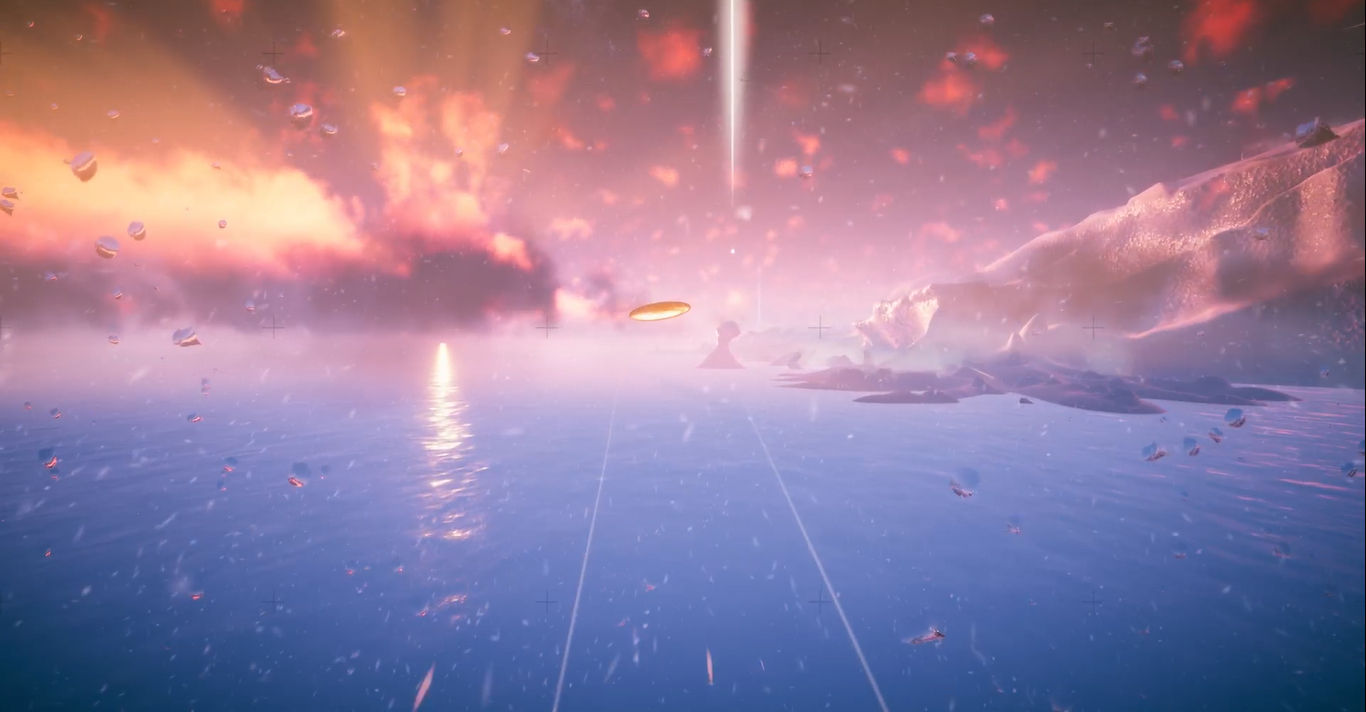 A lo largo de los 12 niveles de juego, que se convierten en menos de dos horas si vamos a tiro hecho, recorremos diferentes escenarios abiertos ambientados en varios planetas ficticios cada uno con su peculiaridad, desde mundos acuáticos hasta desiertos infinitos. En cada uno de ellos tenemos como objetivo alcanzar un haz de luz que sirve como punto de extracción, aunque por el camino a veces se nos marcan otras metas adicionales, como por ejemplo activar el portal final, y encontramos coleccionables que mejoran nuestro tiempo de planeo. Pese a lo que pueda parecer, Exo One no es en realidad una experiencia meramente contemplativa, sino que posee todos los artefactos necesarios para convertirse en una aventura tradicional basada en el desafío, algo que quizás juega en contra de su propia originalidad.