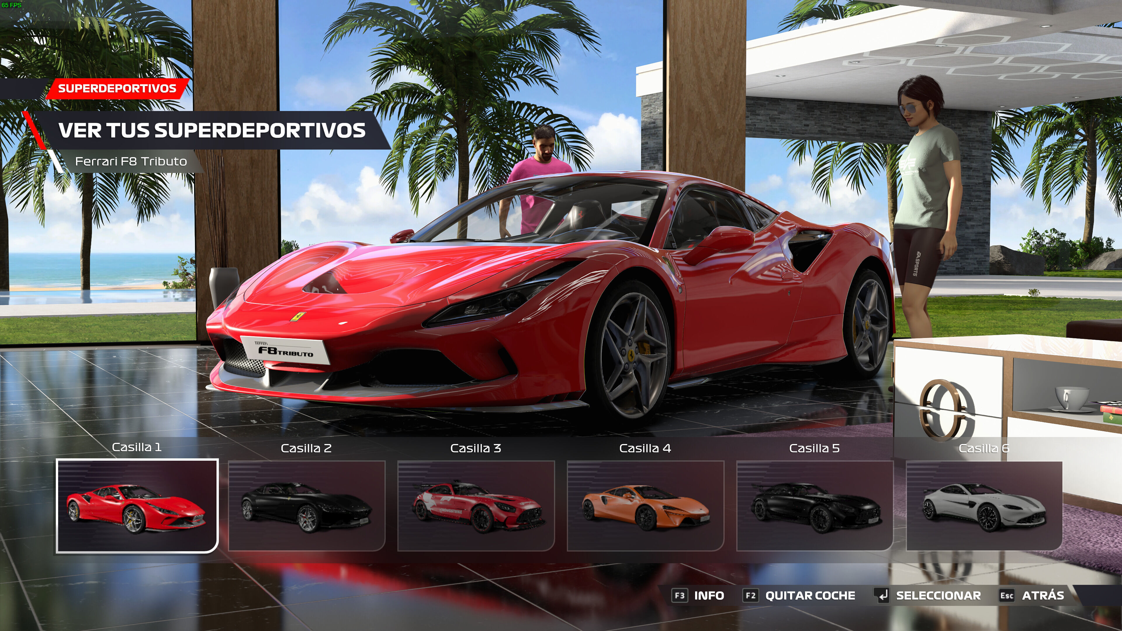 En su lugar, como alternativa muy lejana a nivel disfrutable, tenemos algo llamado "Vida F1", nuestra propia "casa" que podemos personalizar de forma bastante básica y que cuenta con su propio museo de Súperdeportivos para coleccionar con unas fichas que obtenemos cumpliendo ciertos objetivos, pudiendo también conducirlos en ciertas pruebas contra el cronómetro o de habilidad en el modo Vueltas Rápidas Pirelli. Entre los Superdeportivos encontraremos por ejemplo el mismo safety car de la F1 o distintos modelos superdeportivos emblemáticos de Ferrari, McLaren o Aston Martin, cada uno de ellos conduciéndose de forma muy diferente a un F1, aunque su cantidad no es demasiado elevada.