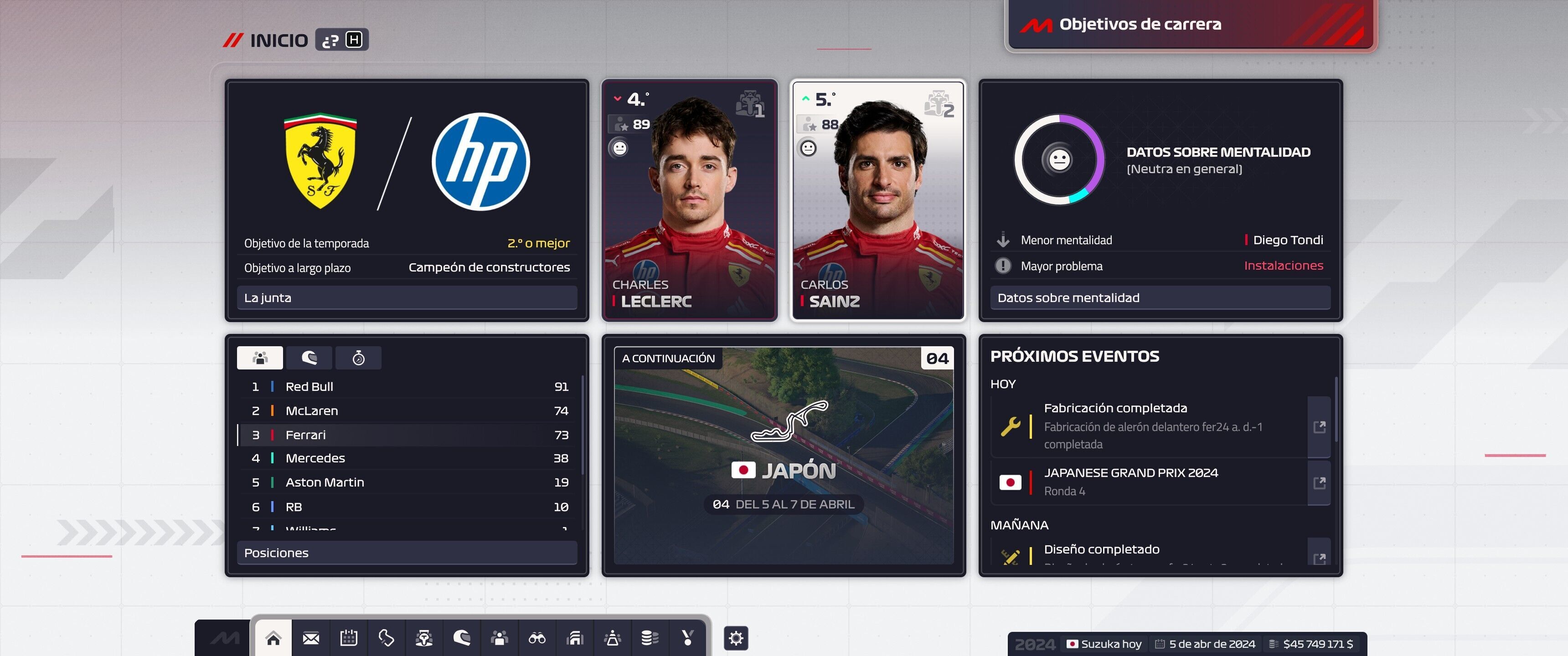 Esto no quiere decir que vayamos a estar quietos en ningún momento mientras esperamos al siguiente gran premio, siempre tendremos algo que hacer, comprobar el rendimiento de nuestro equipo de boxes y gestionar su entrenamiento, planificar las actividades con las marcas, evaluar nuestro coche, ver en que falla y decidir las piezas que debemos mejorar para esta temporada... o decidir apostar ya por la siguiente iniciando el proceso de investigación de las piezas del nuevo monoplaza...