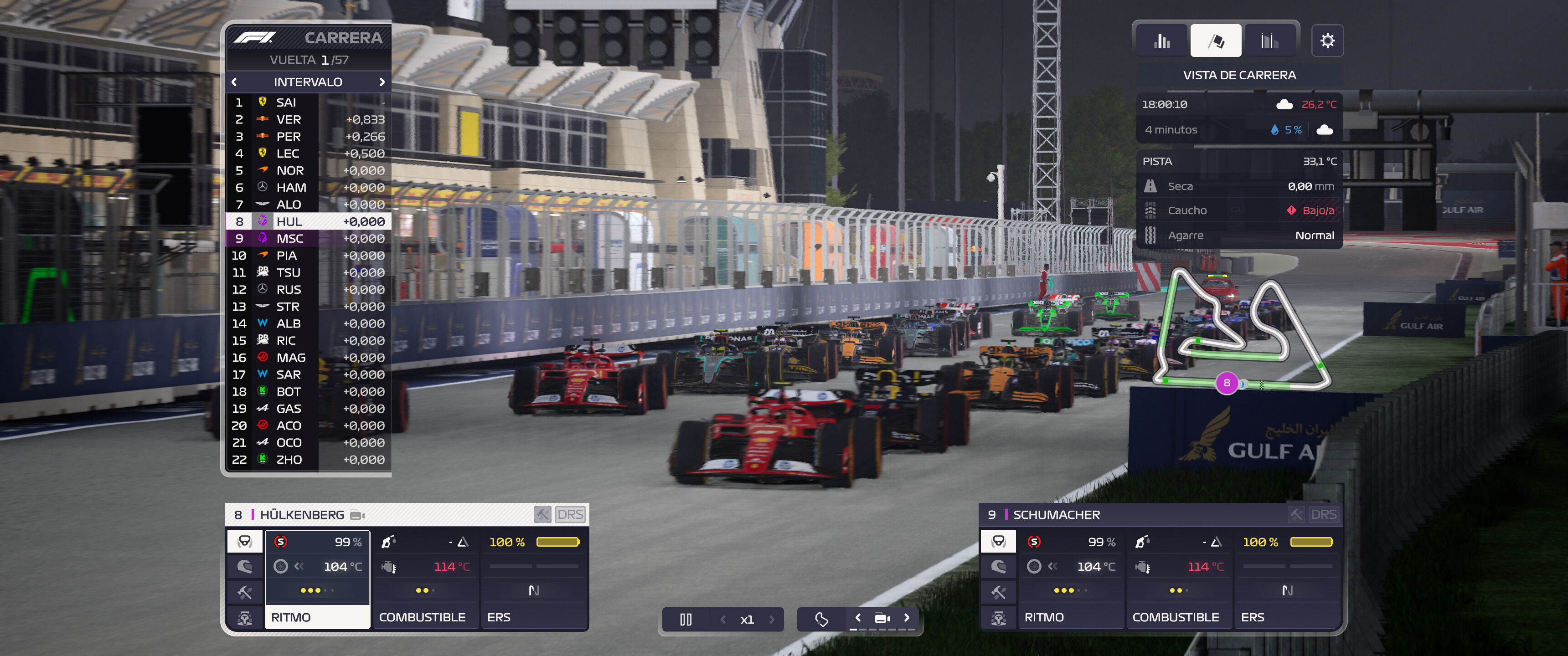 Todas estas gestiones no están mal y son entretenidas aunque hay algunos fallos que deben corregirse. Por ejemplo, durante nuestras partidas hemos visto como se opta con demasiada facilidad por la bandera roja que suspende la sesión, los accidentes graves son demasiado recurrentes y hemos visto en más ocasiones esta bandera que aparecer un coche de seguridad o un coche de seguridad virtual. Además, en el parón de la bandera roja se nos permite hacer cambios de neumático o reparaciones ligeras del coche pero no podemos modificar la estrategia en ese instante, tenemos que esperar a que se reanude el GP, pausar el tiempo (sí, por cierto, podemos acelerar el tiempo o pausarlo durante las carreras) y hacer las modificaciones en la estrategia necesarias para tal fin.
