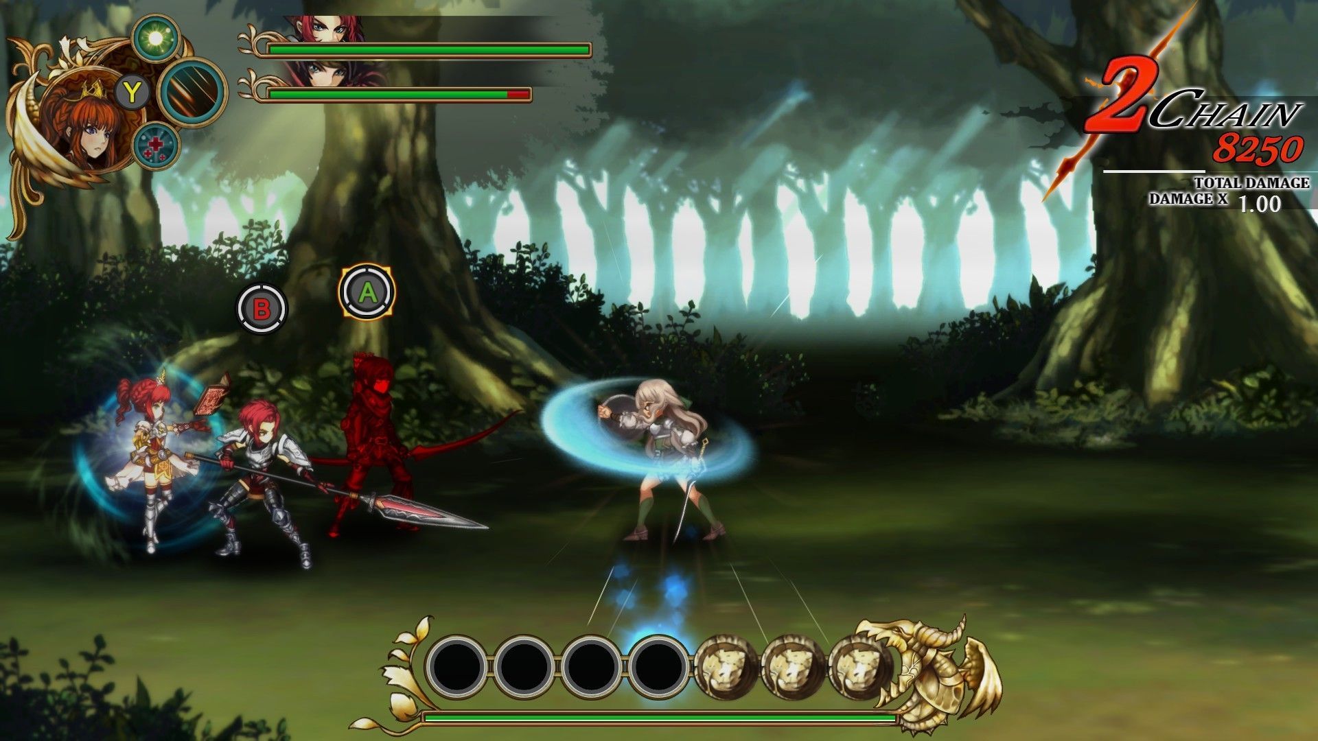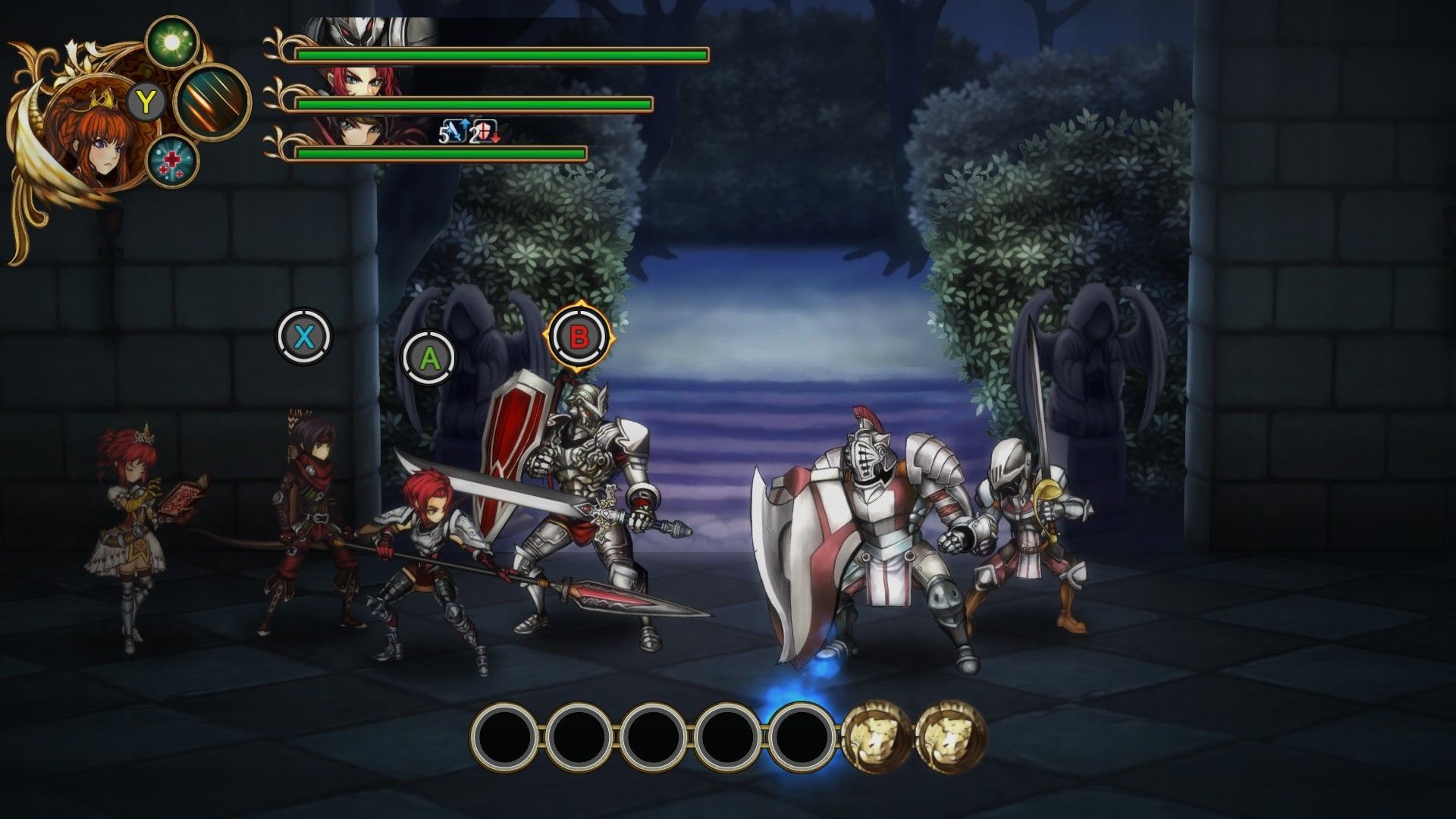 Cada uno de nuestros héroes está asignado a uno de los botones principales del mando (o del teclado, claro) y cuando pulsamos su botón correspondiente, ese guerrero realizará un ataque si tiene un punto de acción disponible para consumir. Cada uno de ellos puede acumular hasta tres acciones, por lo que nuestro objetivo será intentar enlazar nuestras ofensivas para realizar grandes combos, ya que mientras más largos sean, mayor será el multiplicador de daño.